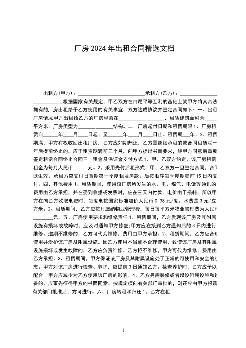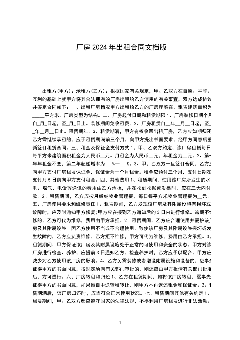 1、甲、乙双方约定,该厂房租赁每日每平方米建筑面积租金为人民币_____元。月租金为人民币_____元,年租金为___元。