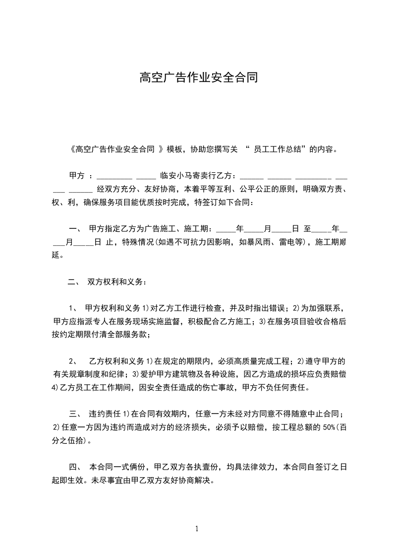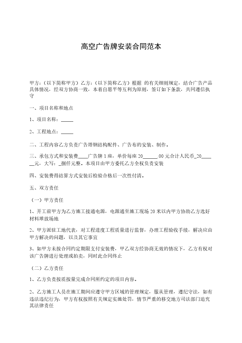 3、乙方在安装制作期间的安全责任由乙方自行负责,安装制作过程中的一切安全责任与甲方无关。