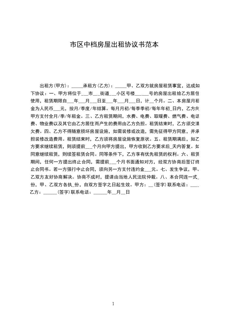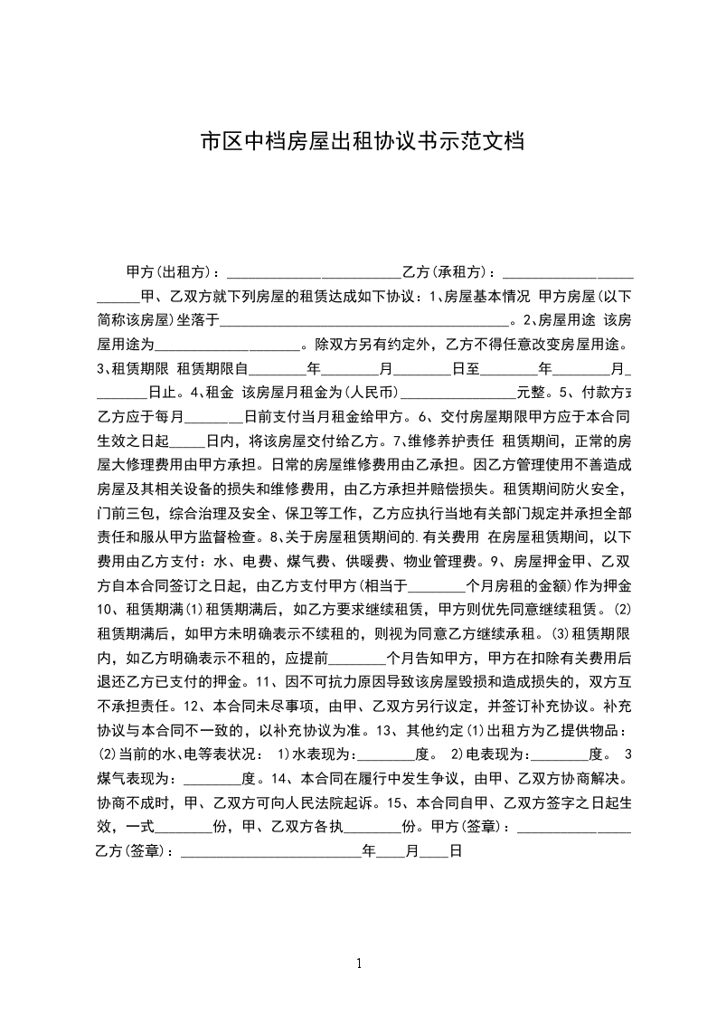 该房屋用途为____________________。除双方另有约定外,乙方不得任意改变房屋用途。