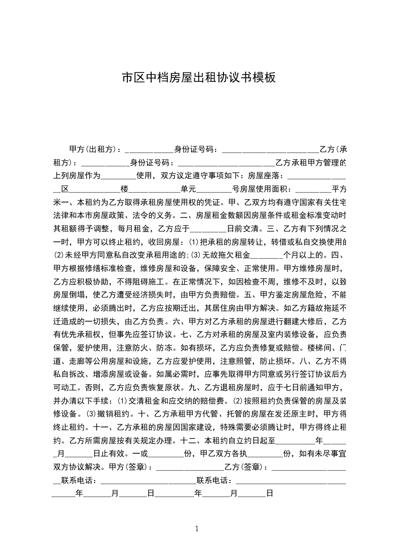 11、因不可抗力原因导致该房屋毁损和造成损失的,双方互不承担责任。