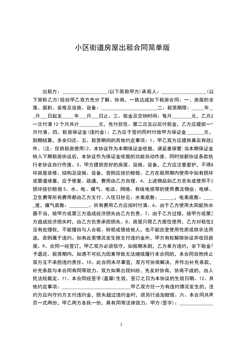 甲方将_____市______路_____小区___#楼___#的住房(以下简称该房屋)出租给乙方,并达成如下协议。