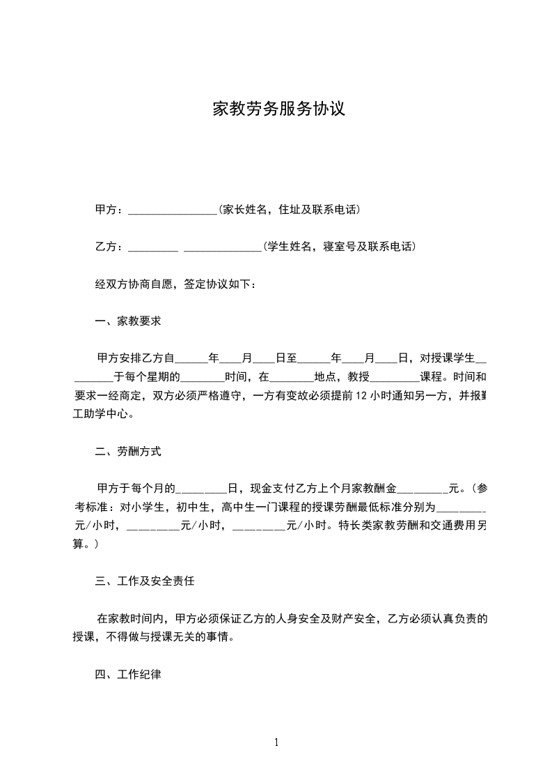 为规范我院学生对_________广大中,小学家教活动,_________学院勤工助学中心特立此协议书。予以书面保证。
