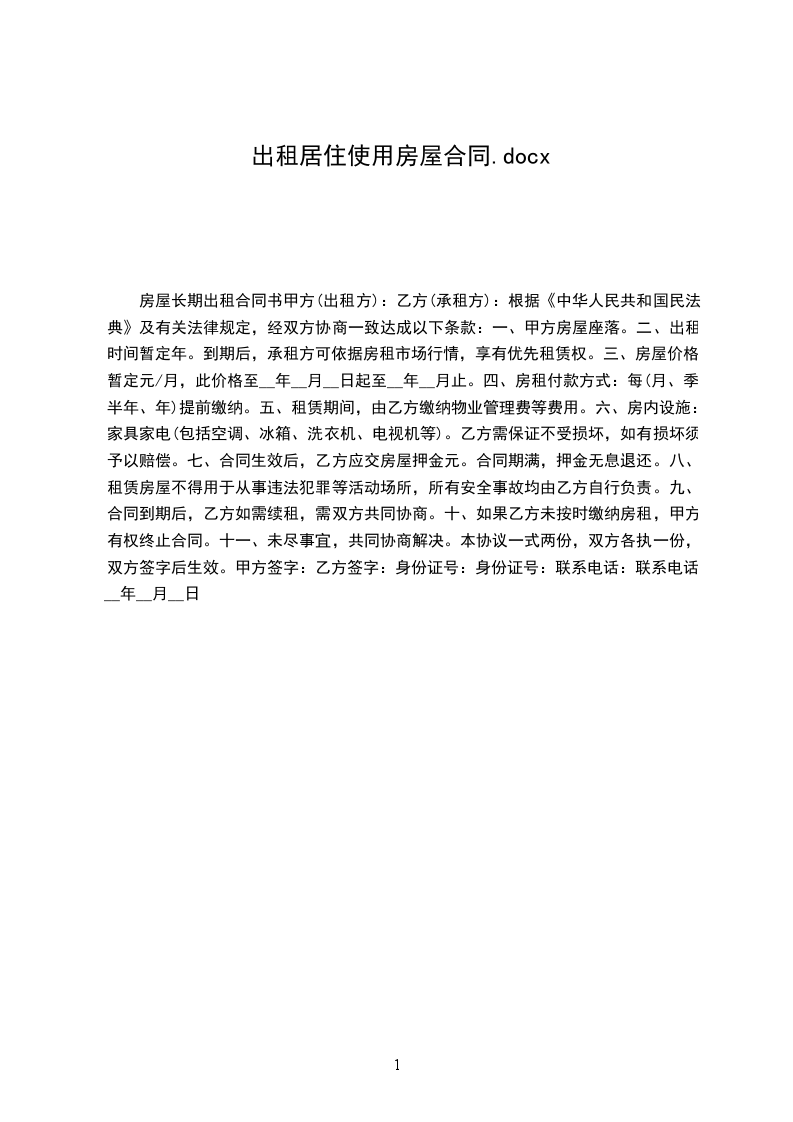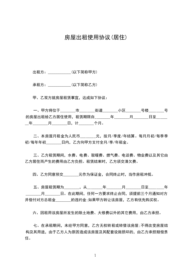 使用。租赁期满,甲方有权收回出租房屋,乙方应如期交还。乙方如要求续租,则必须在租赁期满个月之前书面通知甲方,经甲方同意后,重新签订租赁合同。