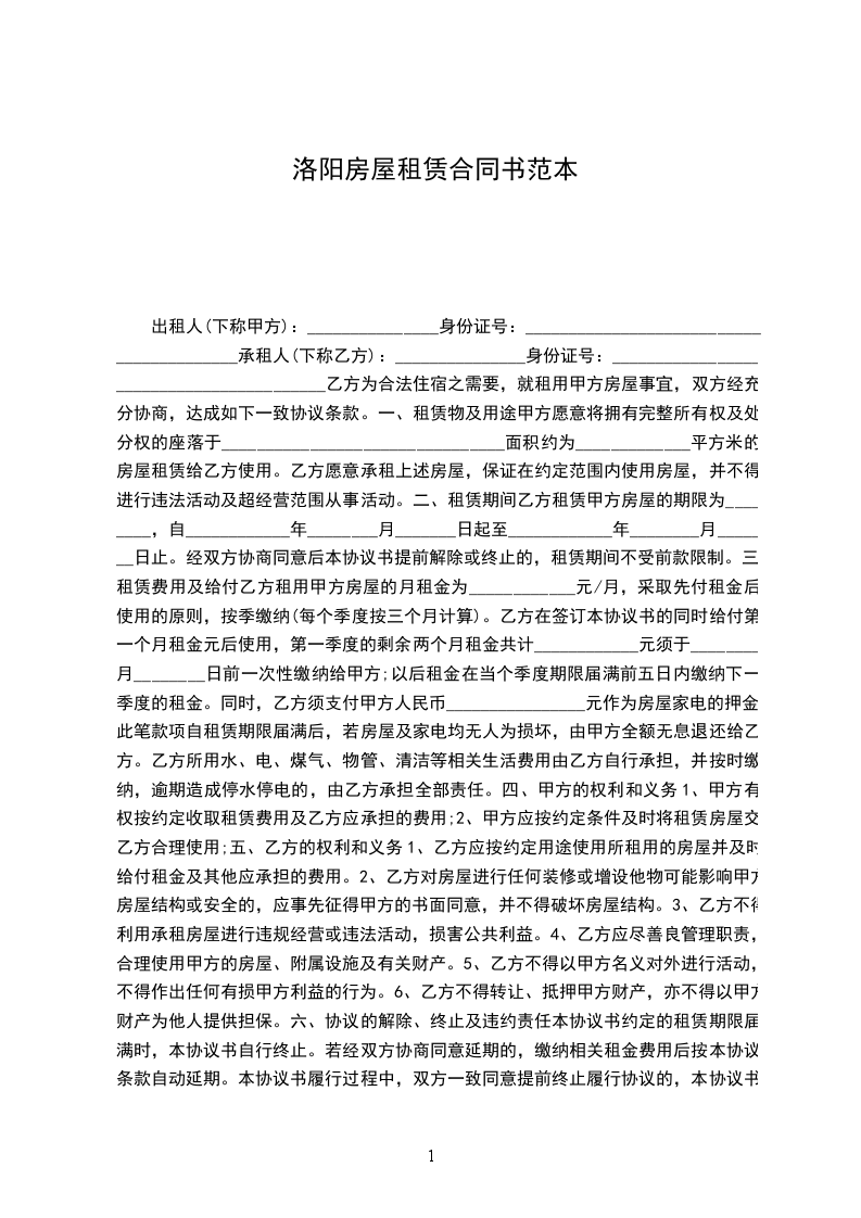 乙方为合法住宿之需要,就租用甲方房屋事宜,双方经充分协商,达成如下一致协议条款。