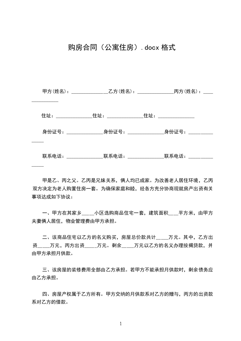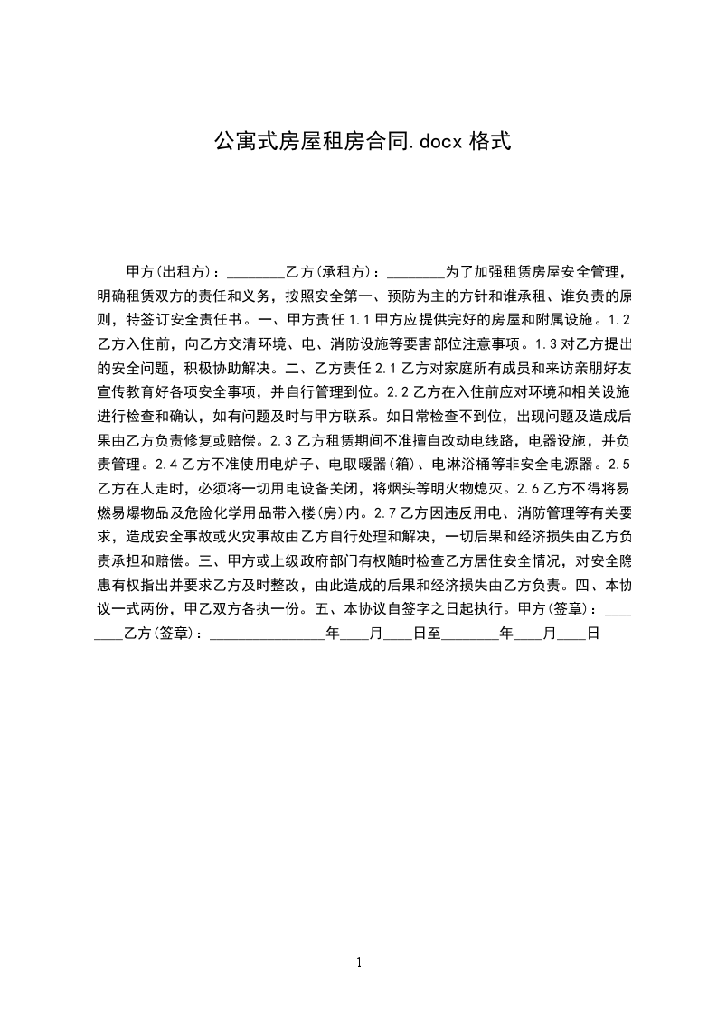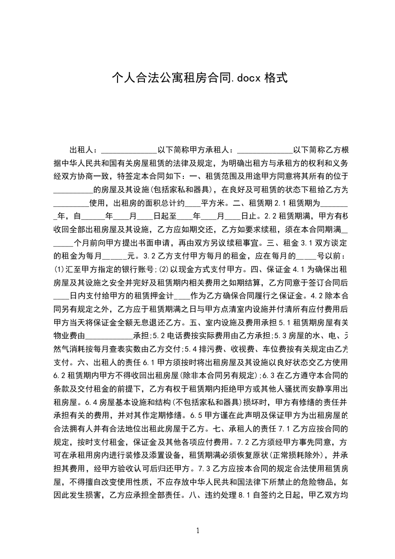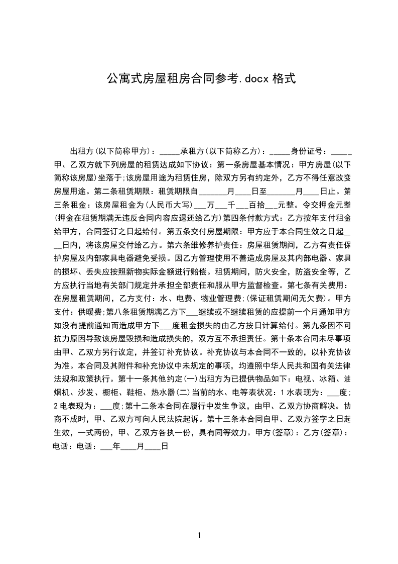 出租方(以下简称甲方):_____承租方(以下简称乙方):_____身份证号:_____甲、乙双方就下列房屋的租赁达成如下协议: