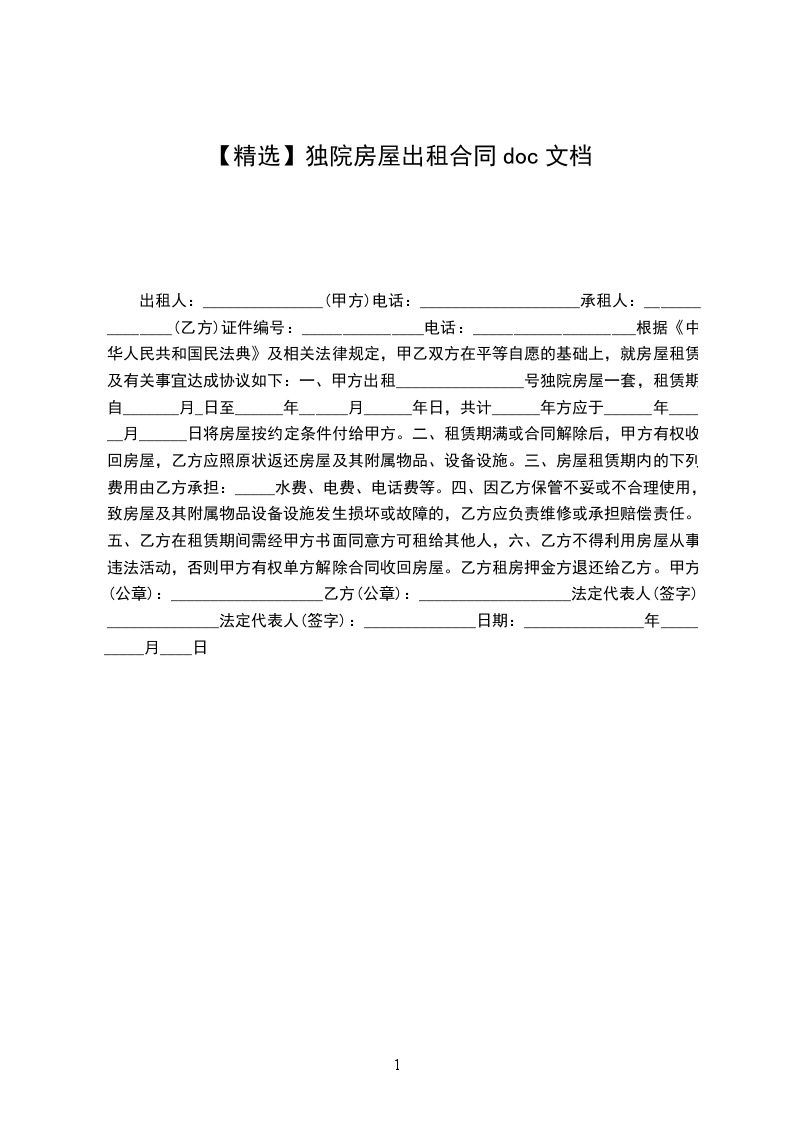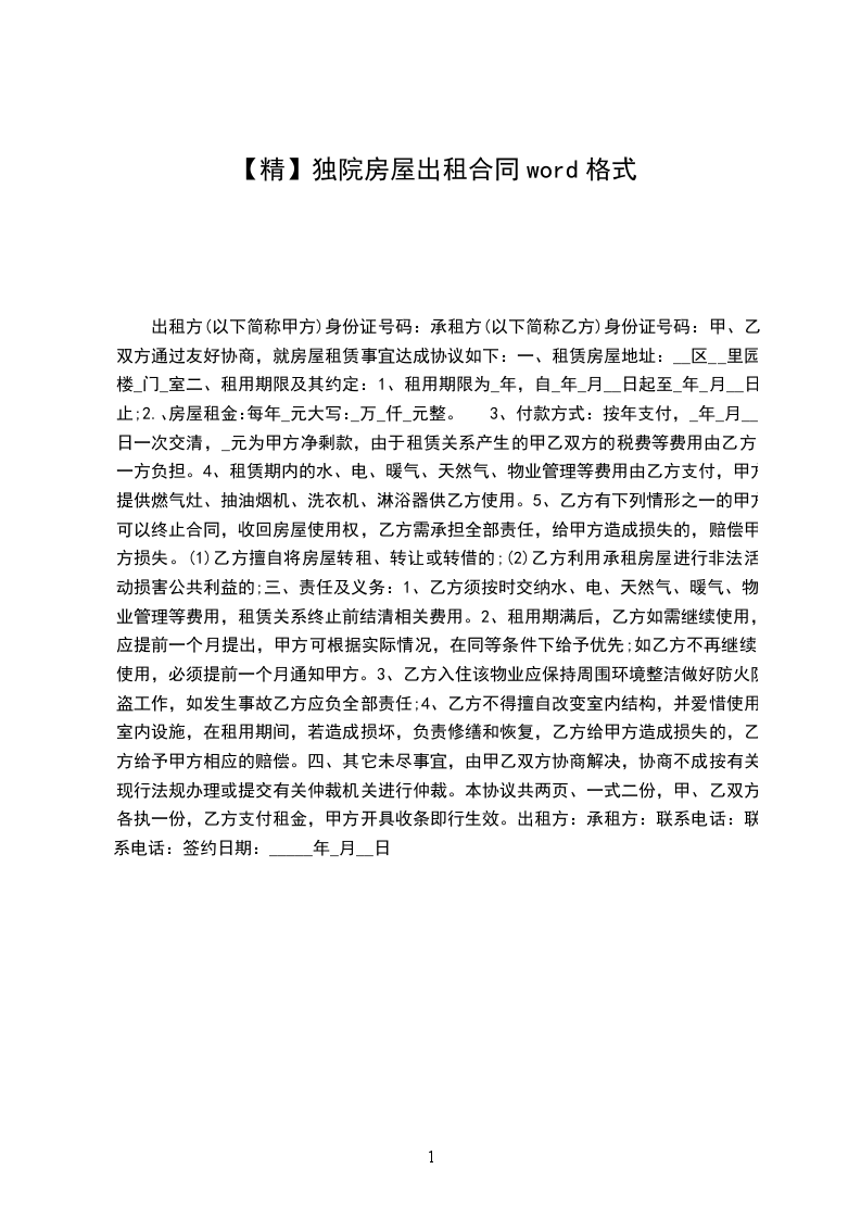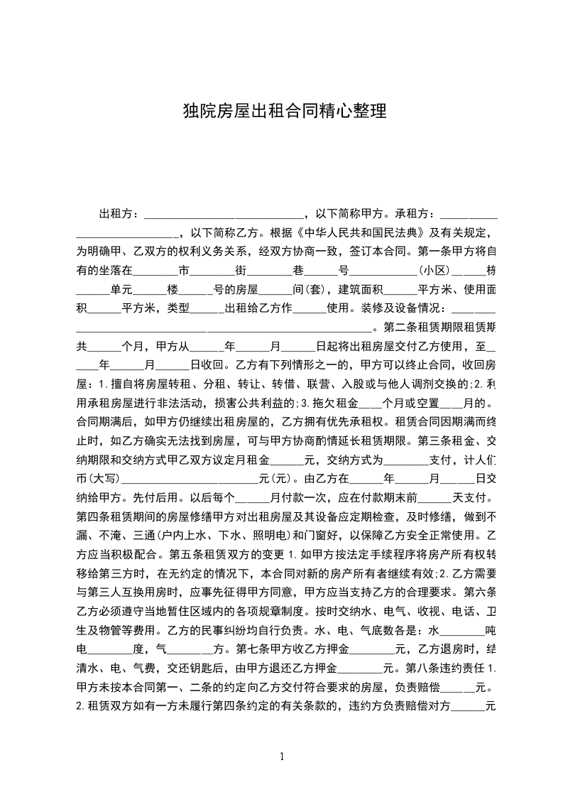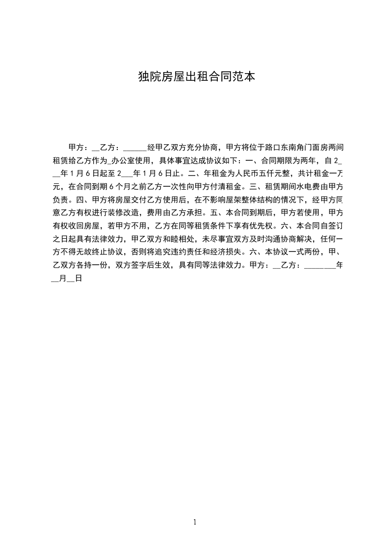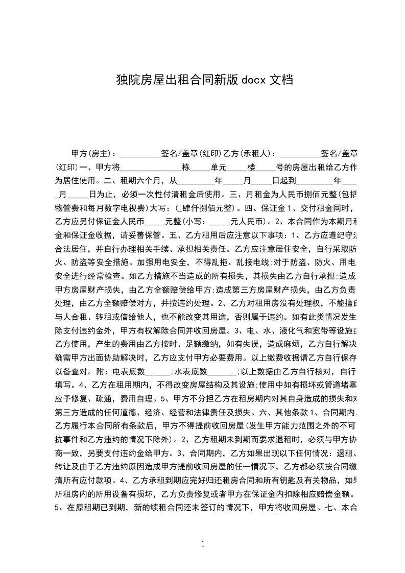 一、甲方将_______________栋_____单元_____楼_____号的房屋出租给乙方作为居住使用。