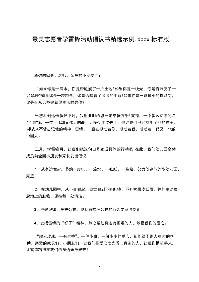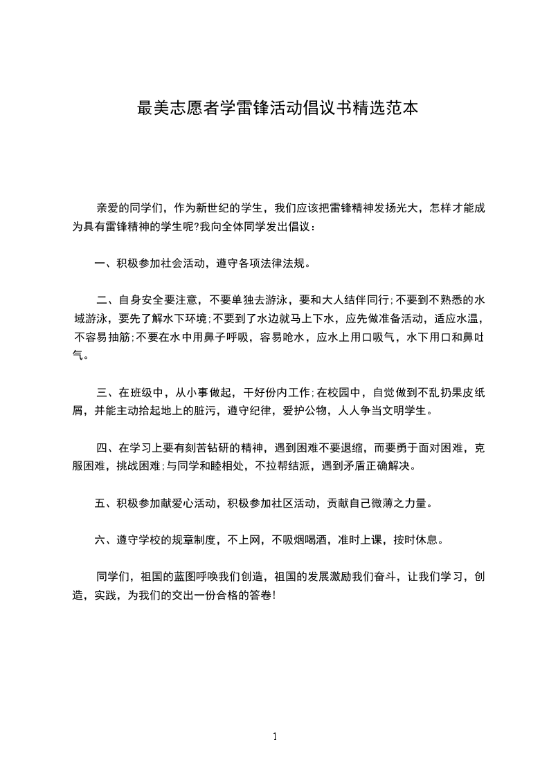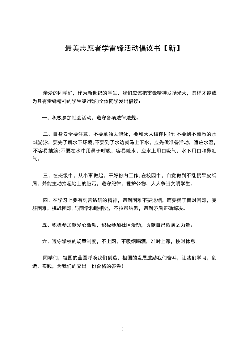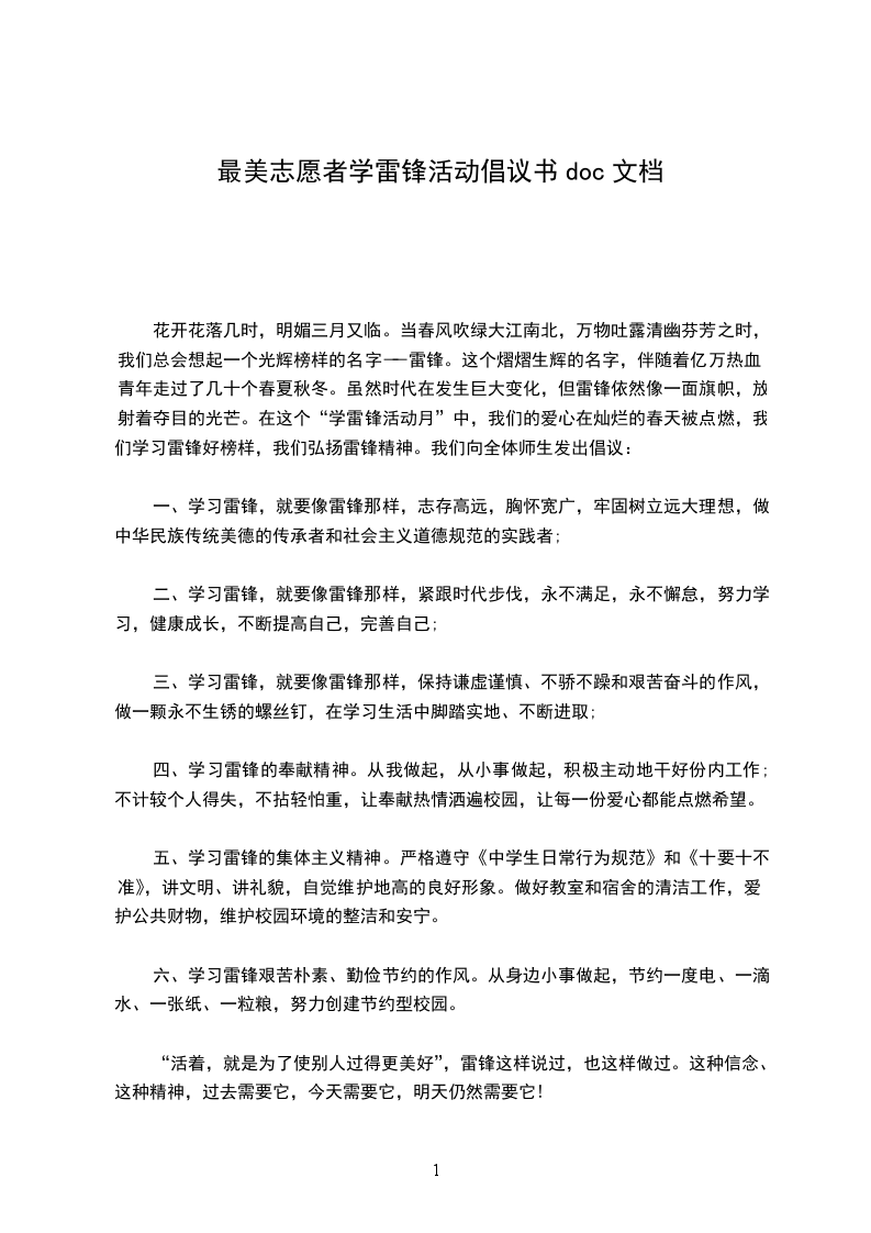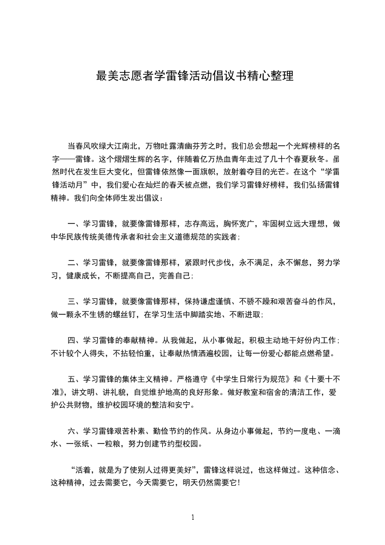 花开花落几时,明媚三月又临。当春风吹绿大江南北,万物吐露清幽芬芳之时,我们总会想起一个光辉榜样的名字――雷锋。这个熠熠生辉的名字,伴随着亿万热血青年走过了几十个春夏秋冬。虽然时代在发生巨大变化,但雷锋依然像一面旗帜,放射着夺目的光芒。在这个“学雷锋活动月”中,我们的爱心在灿烂的春天被点燃,我们学习雷锋好榜样,我们弘扬雷锋精神。我们向全体师生发出倡议: