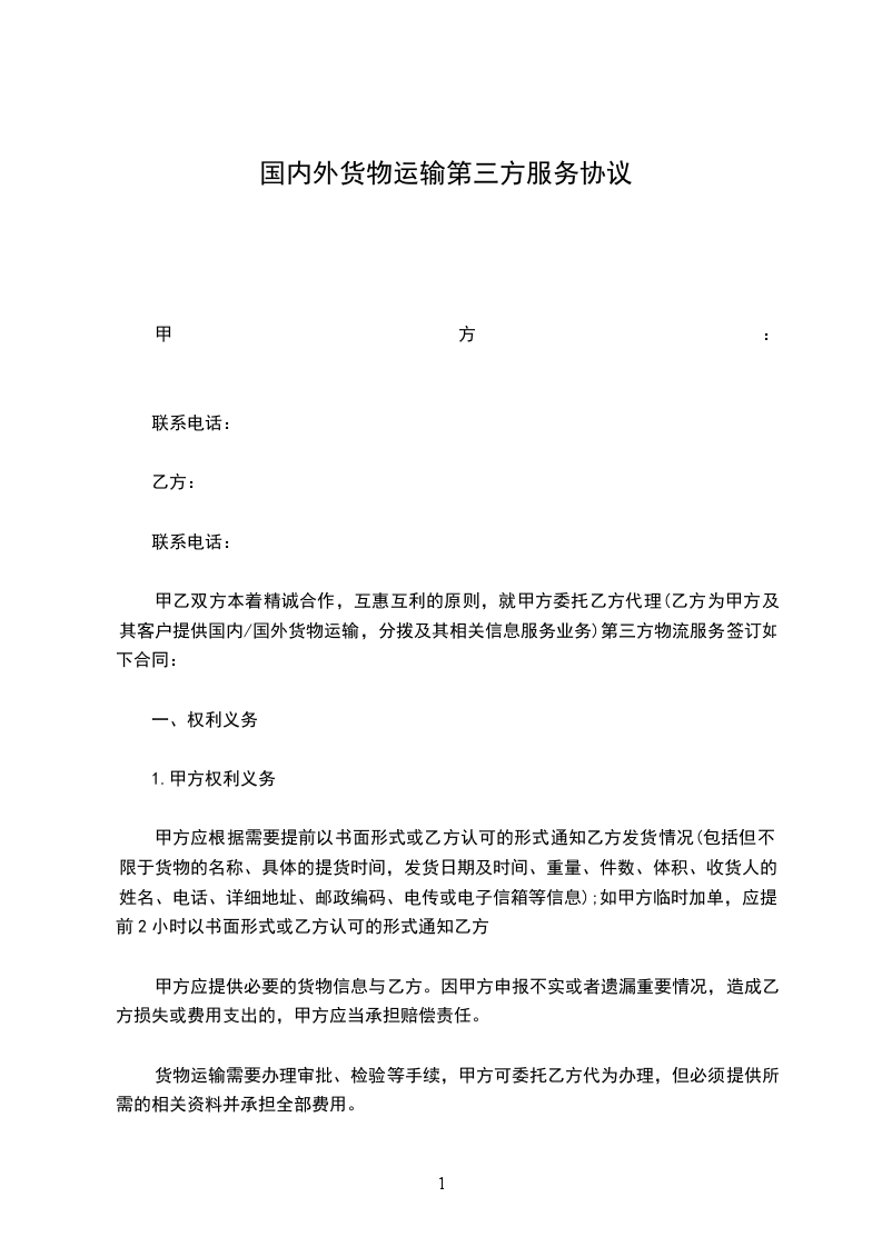 一、甲方需书面告知乙方以便乙方完全知晓本协议项下所承运的货物具体情况。甲方应保证对所运货物拥有所有权。在协议期间,乙方对货物做出的操作安排必须接受甲方的监控和指令。