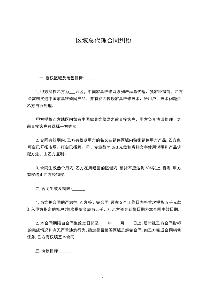 1、根据乙方代理区域的市场现状及发展潜力,制定年度销售目标为 万元,乙方在半年内须完成全年任务的 30 %,如果在规定期不能完成任务的,甲方有权发展其他代理商并视情况收回乙方的总代理商权,甲方执行终止合同;