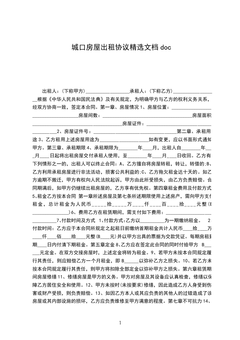8、乙方应在签定此合同的同时付给甲方B______元定金。在双方交接房屋时,上述定金将转为租金。