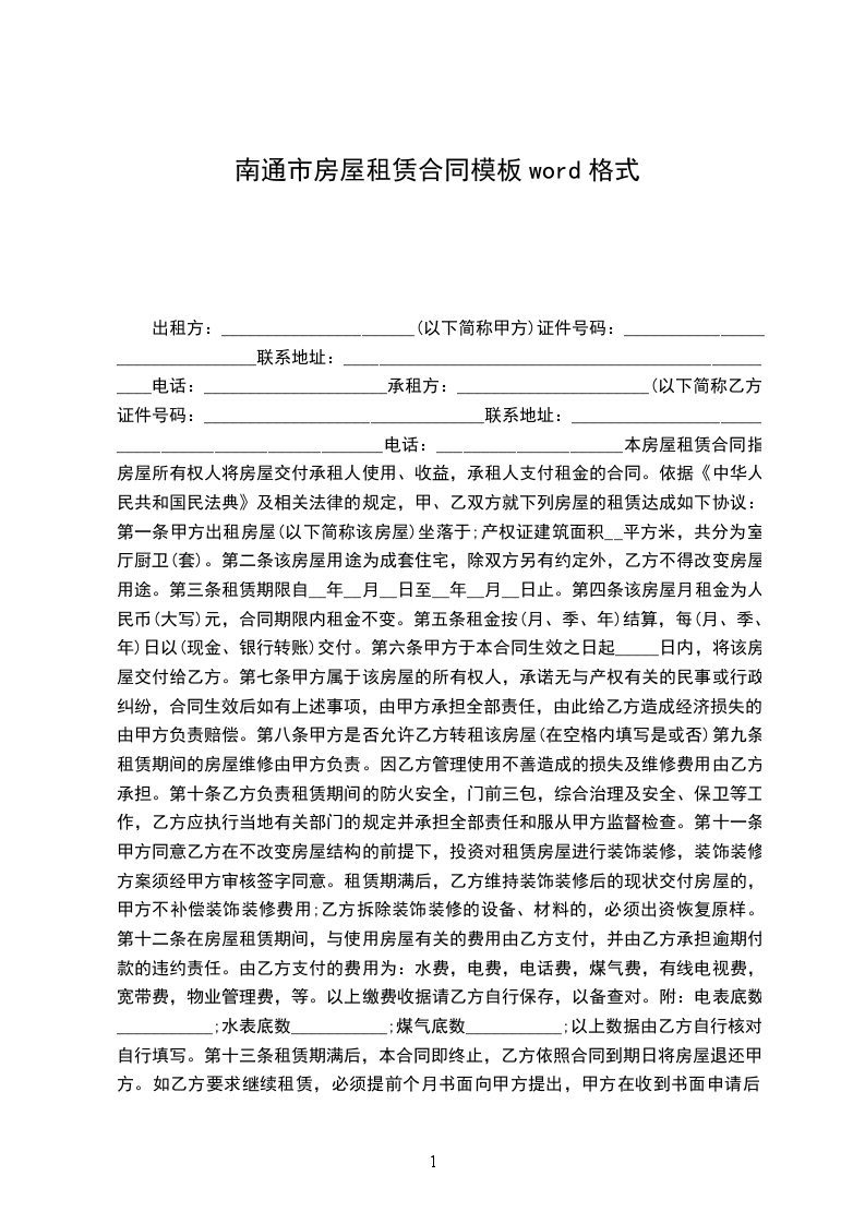 第二条该房屋用途为成套住宅,除双方另有约定外,乙方不得改变房屋用途。第三条租赁期限自__年__月__日至__年__月__日止。第四条该房屋月租金为人民币(大写)元,合同期限内租金不变。第五条租金按(月、季、年)结算,每(月、季、年)日以(现金、银行转账)交付。