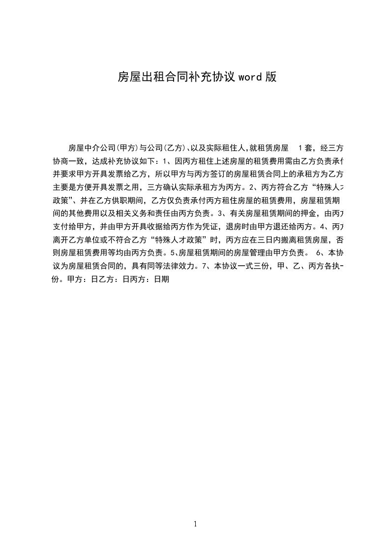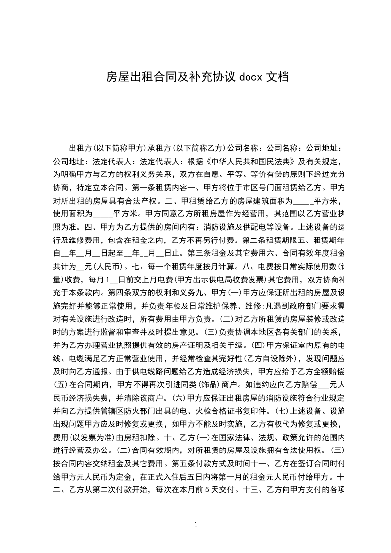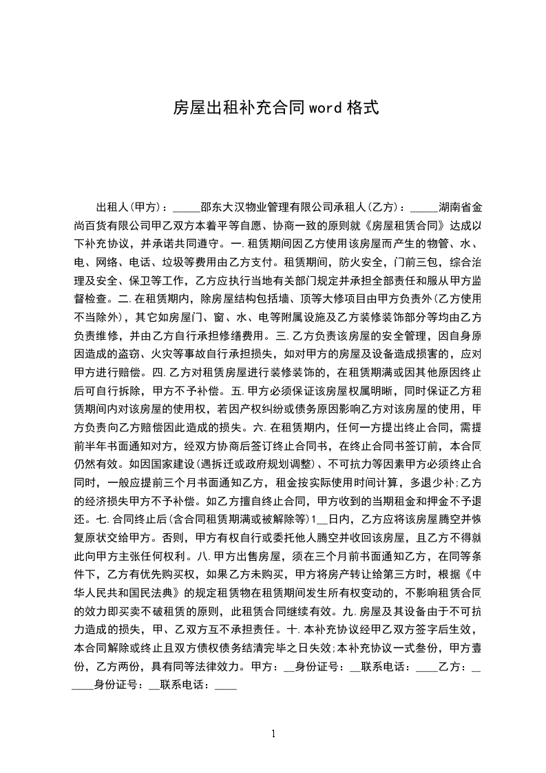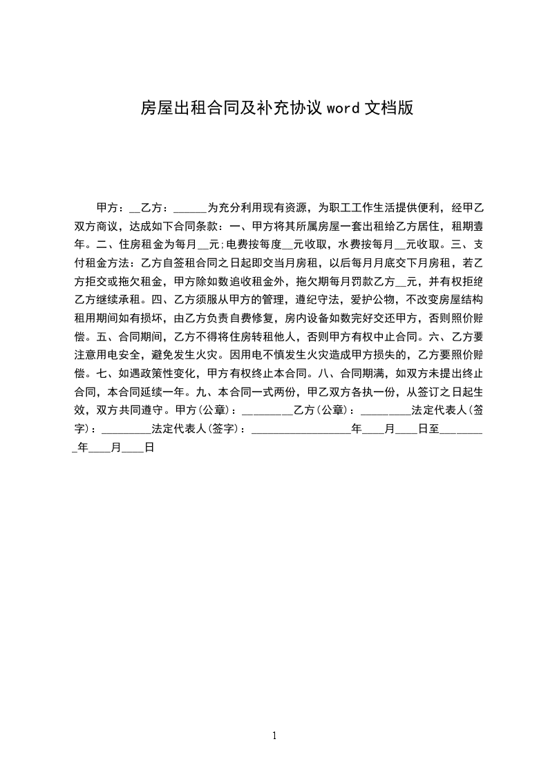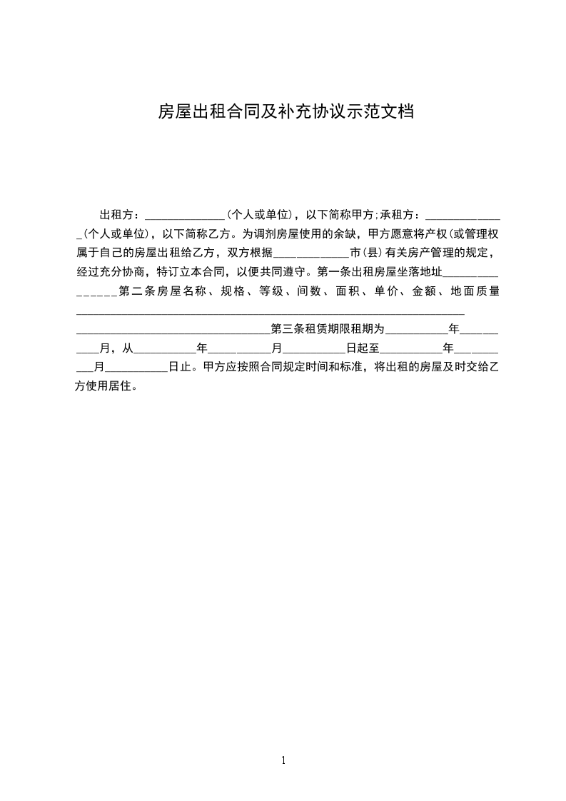 一、甲方将其所属房屋一套出租给乙方居住,租期壹年。