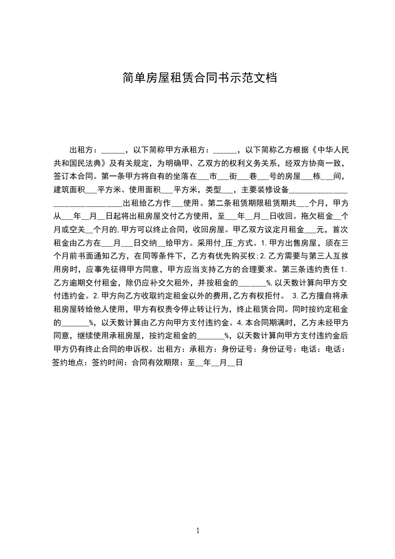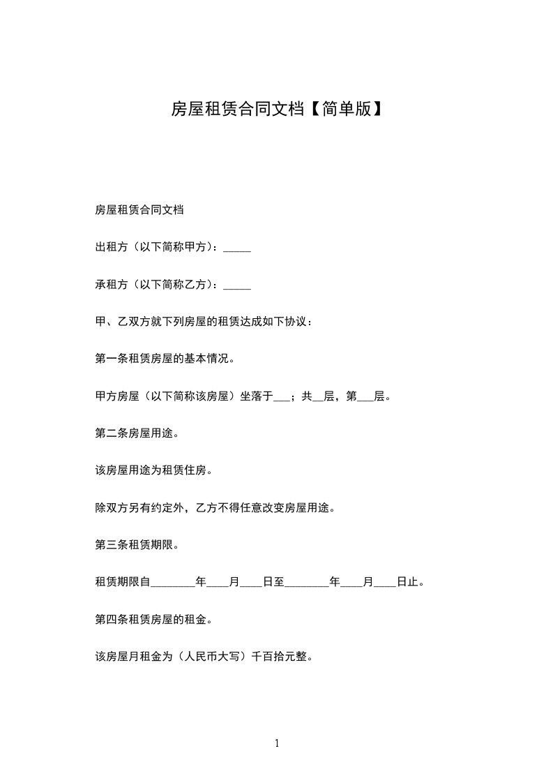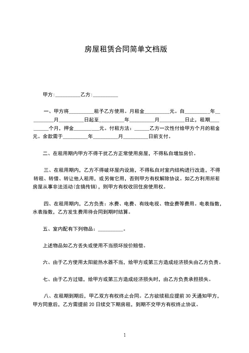 第一条甲方将自有的坐落在___市___街___巷___号的房屋___栋___间,建筑面积___平方米、使用面积___平方米,类型___,主要装修设备________________________________出租给乙方作___使用。