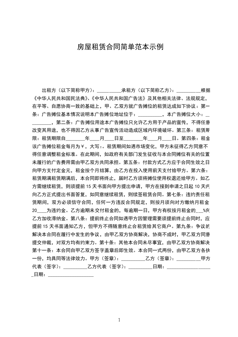 1.乙方逾期交付租金,除仍应补交欠租外,并按租金的_______%,以天数计算向甲方交付违约金。