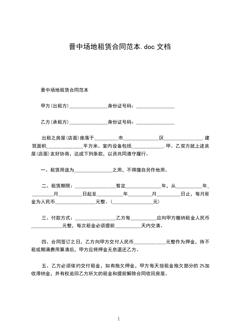第三条租金租金标准为每年_________元,租金按年支付。