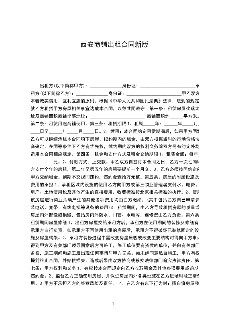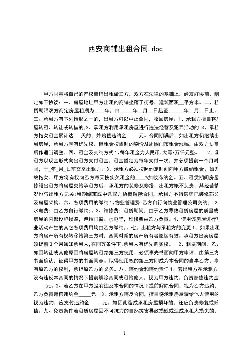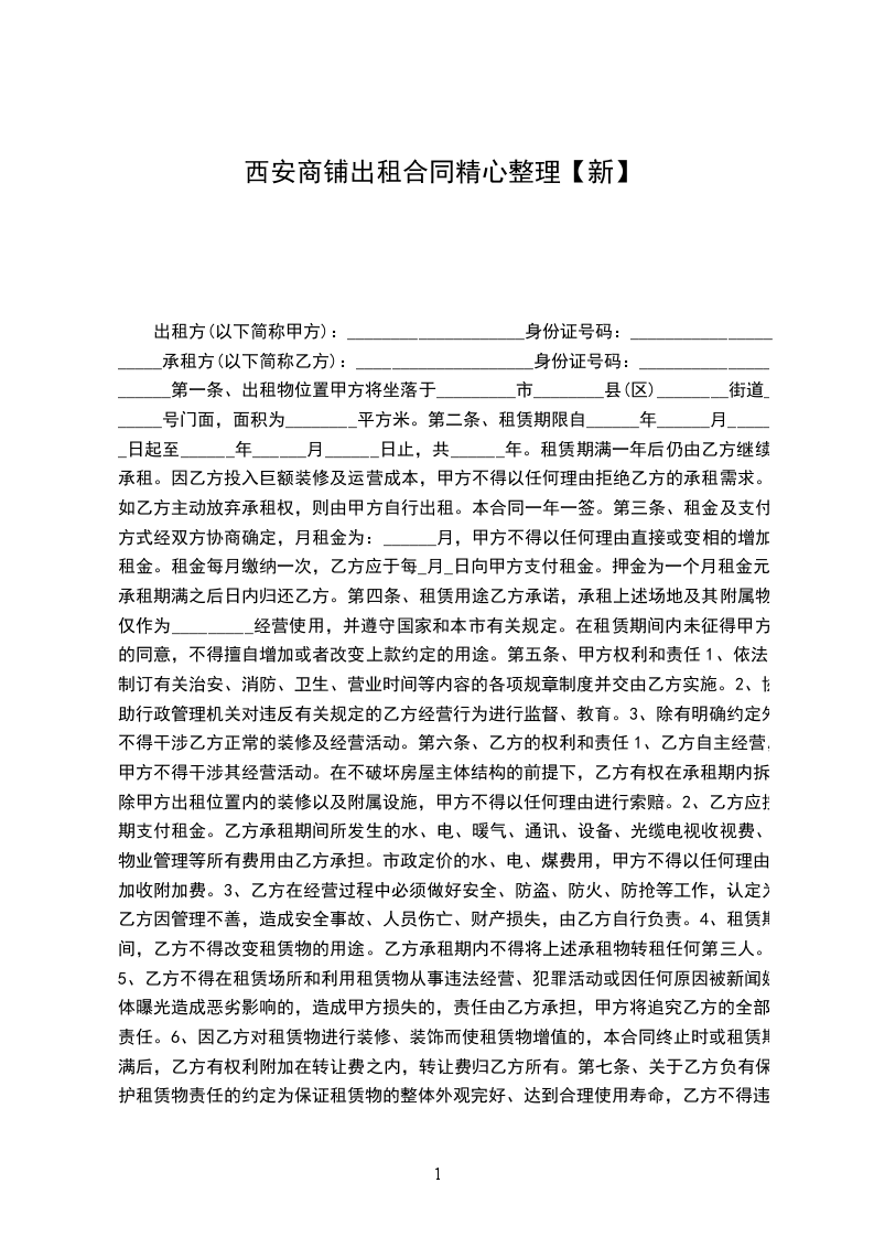 1、租期_____年:______年_____月_____日至______年_____月_____日。