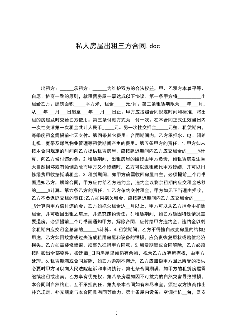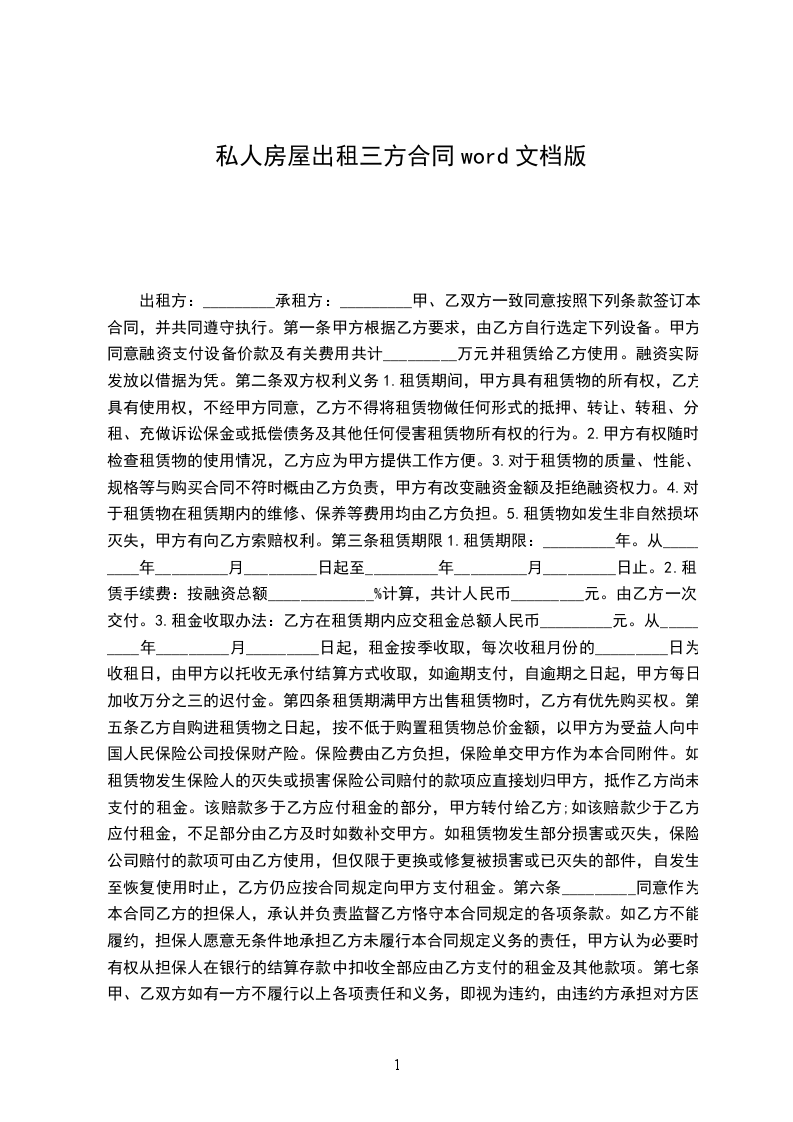 承租方(以下简称乙方):____身份证号:________联系方式:________
