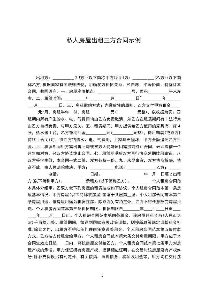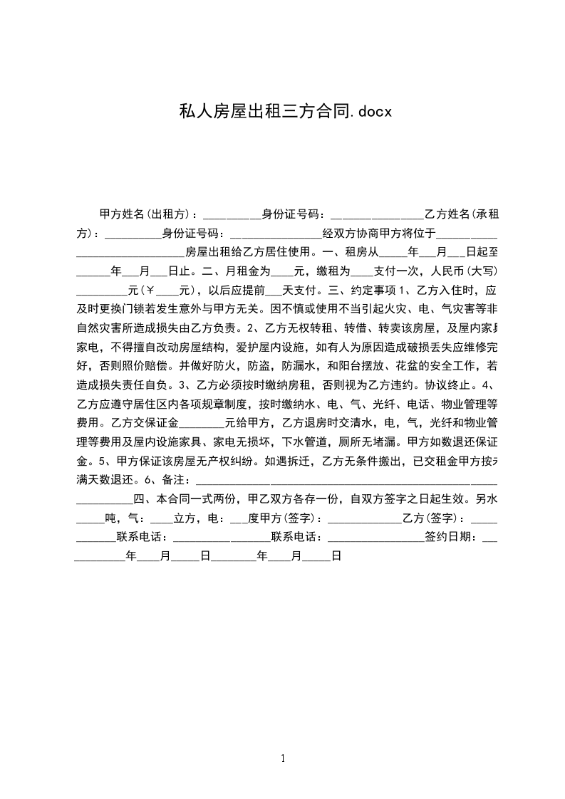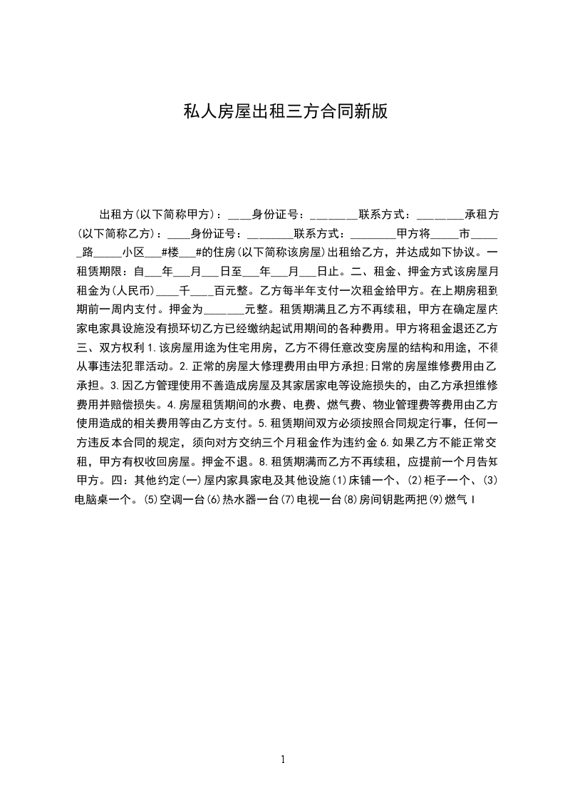 出租方(以下简称甲方):____身份证号:________联系方式:________