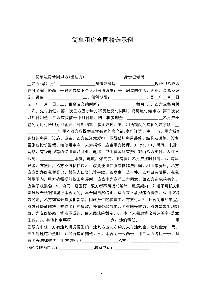 四、租房押金:_________________乙方应于签约同时付给甲方押金元,到期结算,多余归还。