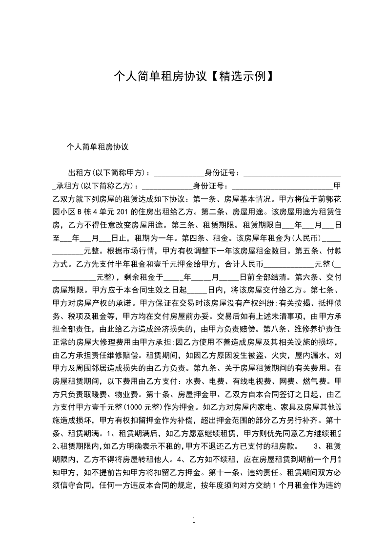现经甲乙双方充分了解、协商,一致达成如下个人租房协议书: