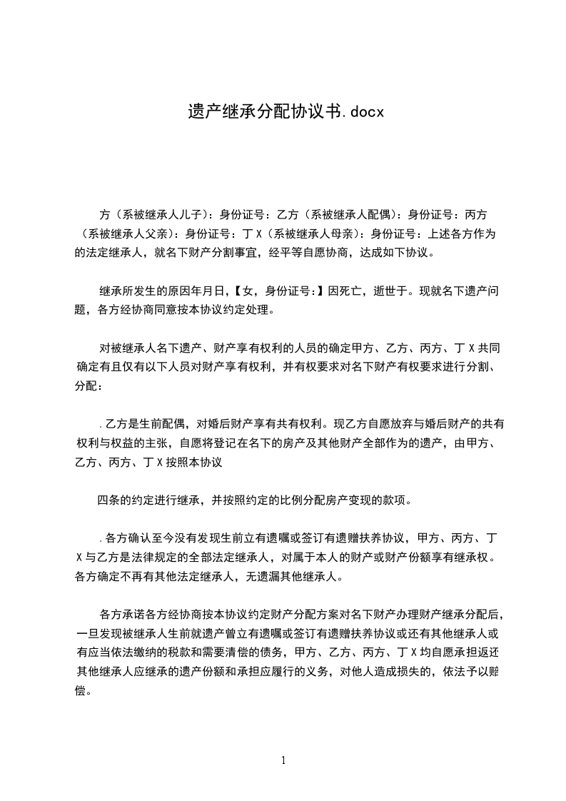 丙方:_________,_________(性别),_________岁,_________族,_________(职业),籍贯、住址同上,系甲之_______。