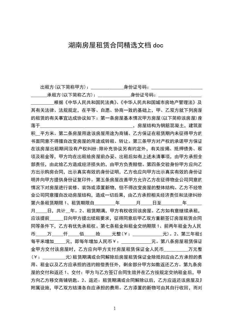 甲方(出租方)_______________身份证号码:__________________________