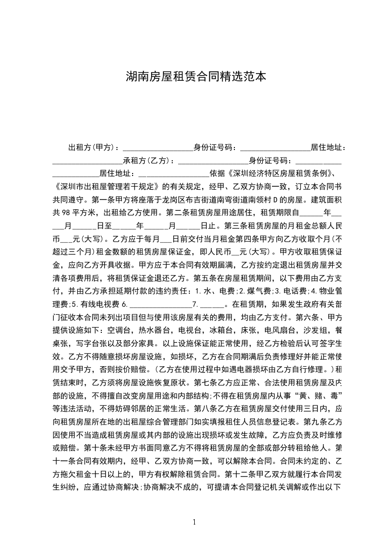 乙方(承租方)_______________身份证号码:__________________________