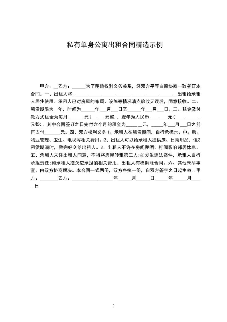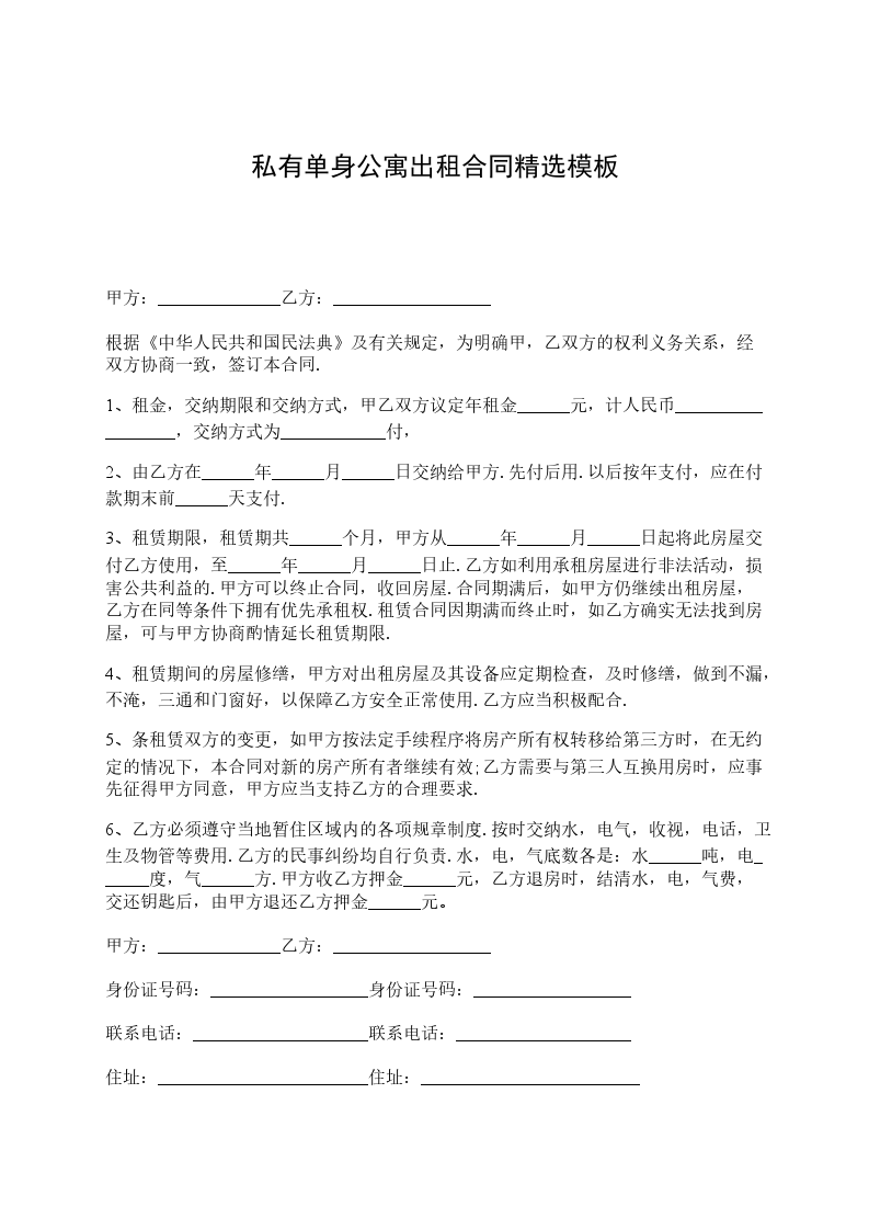 出租方(甲方)_____,男/女,身份证号码___________________________