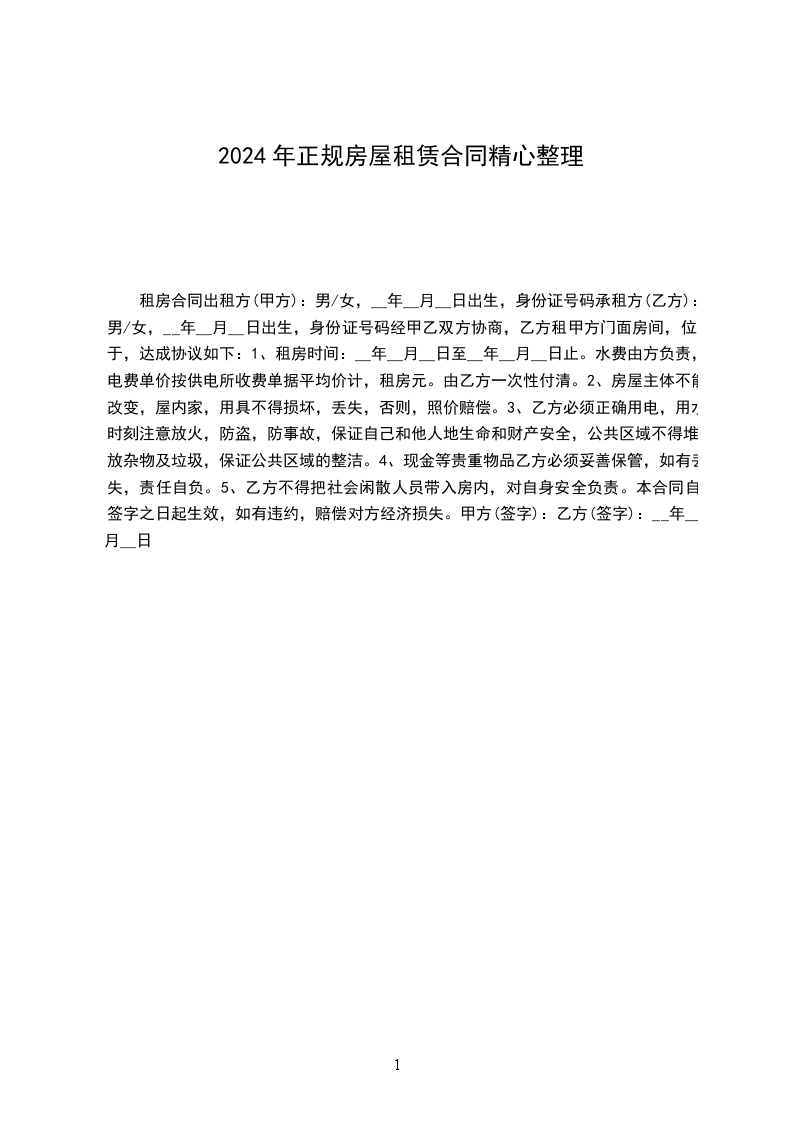 承租方(乙方):男/女,__年__月__日出生,身份证号码