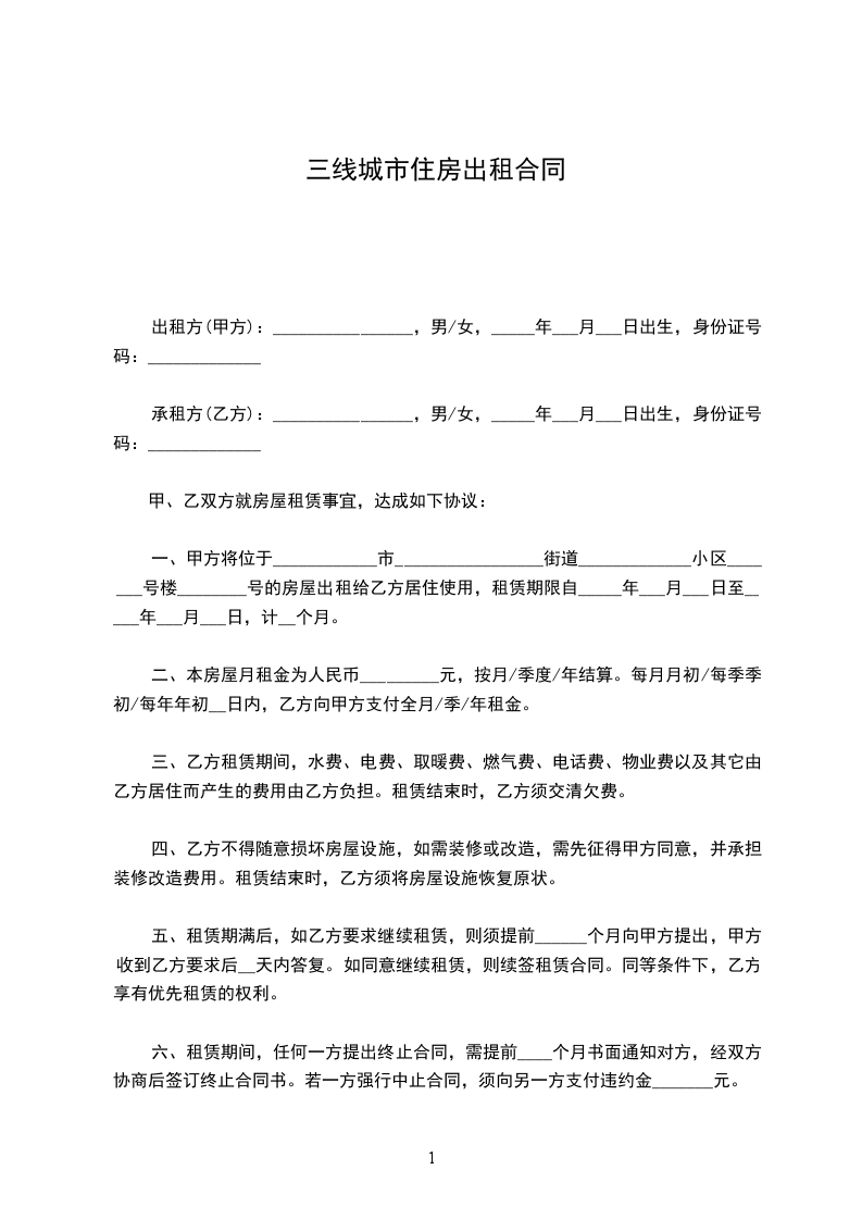 一、甲方将拥有产权或处置权的______市房屋(建筑面积______平方米),出租给乙方居住使用。