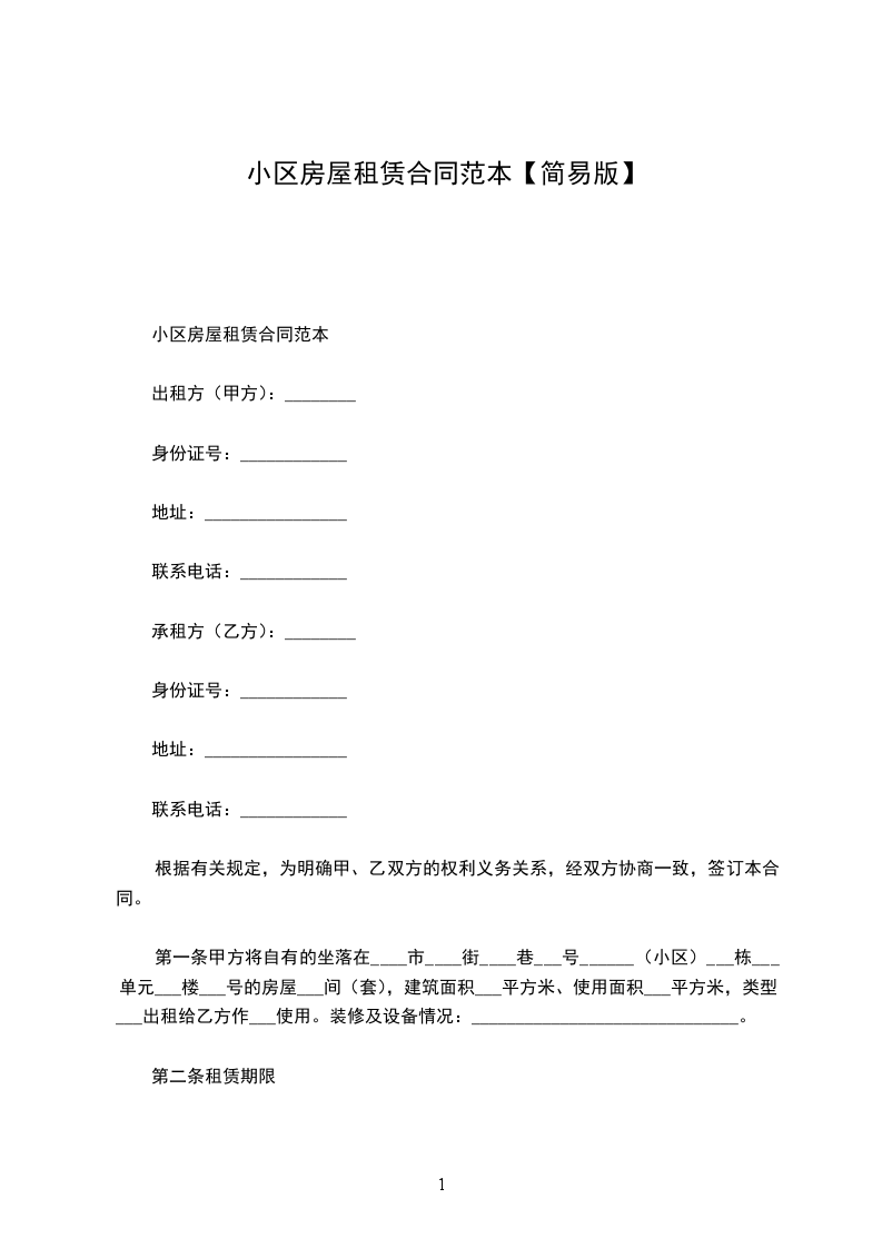 1、本合同所出租房屋坐落在______市______区______号。