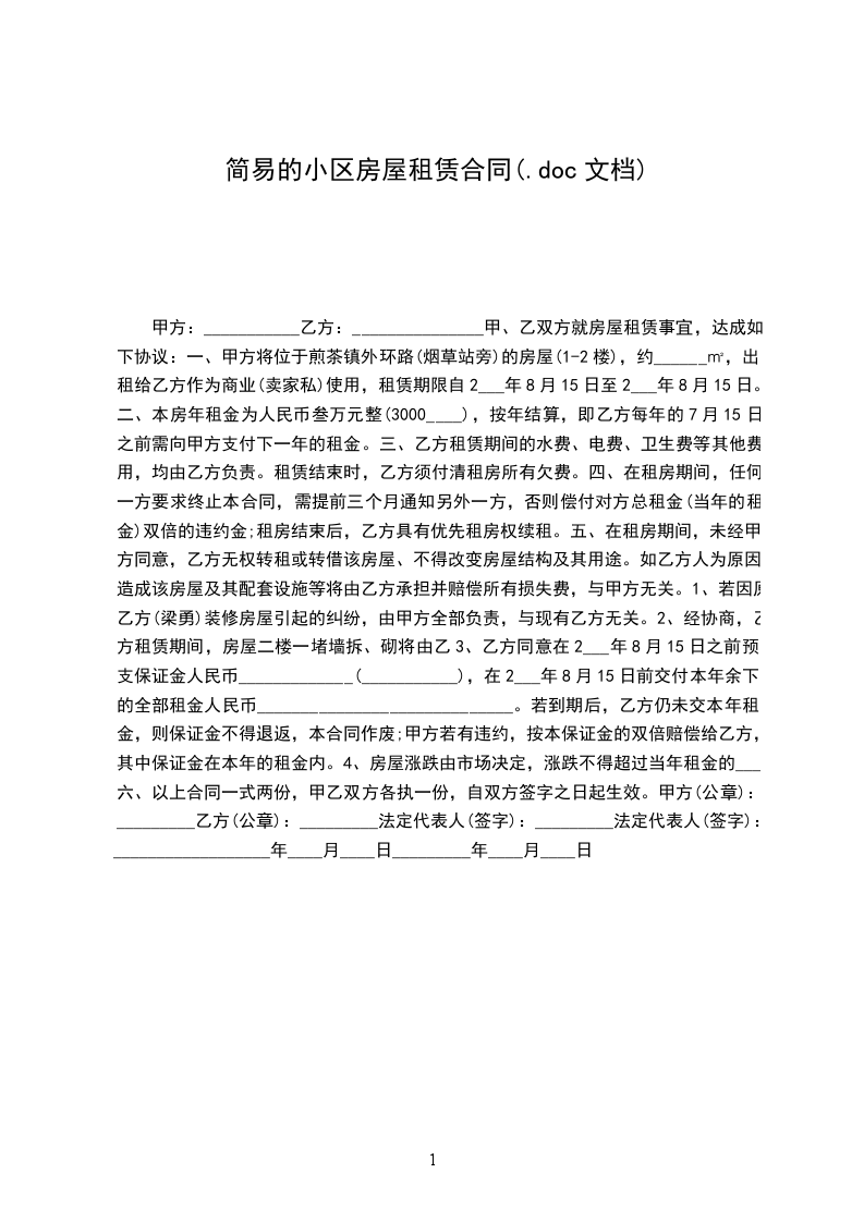 一、甲方将位于煎茶镇外环路(烟草站旁)的房屋(1-2楼),约______㎡,出租给乙方作为商业(卖家私)使用,租赁期限自2___年8月15日至2___年8月15日。