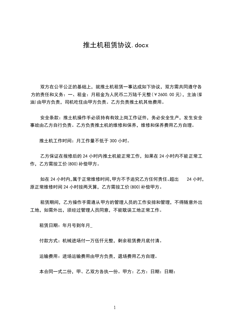 为了确保推土机在租赁过程中正常运行,经甲乙双方就推土机租赁有关事宜进行协商,特签订本合同。