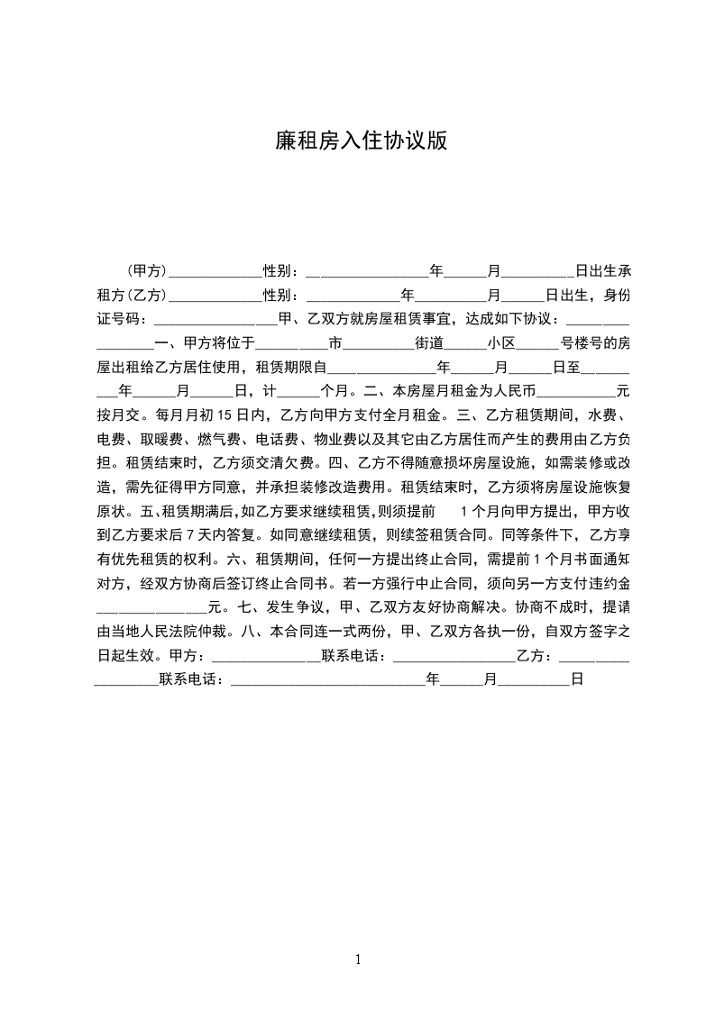十、乙方必须接受当地居委会及相关部门的管理。