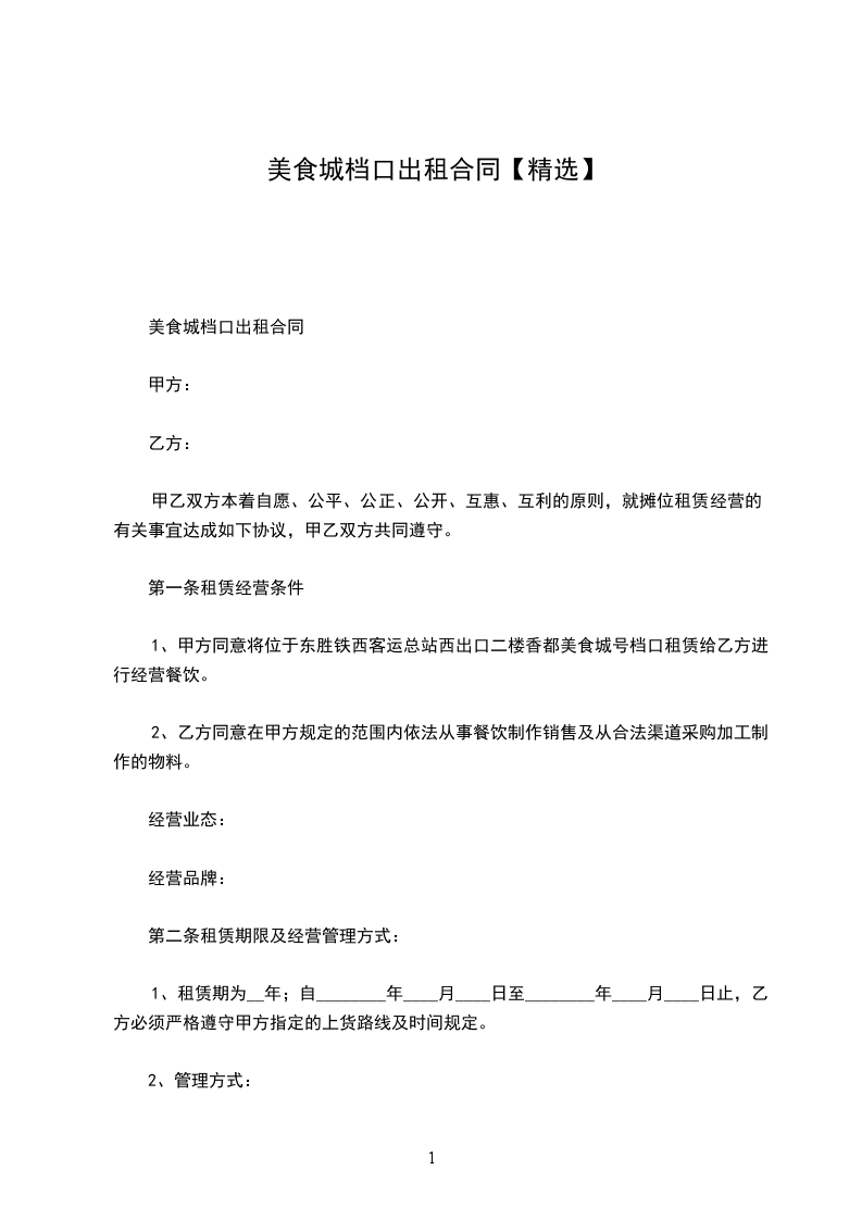 1、租赁期为__年;自__年__月__日至__年__月__日止,乙方必须严格遵守甲方指定的上货路线及时间规定。