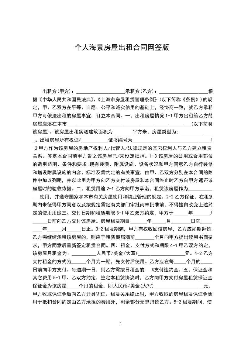4-1甲乙双方约定,该房屋月租金为:__________人民币/美金(大写)___________________元。