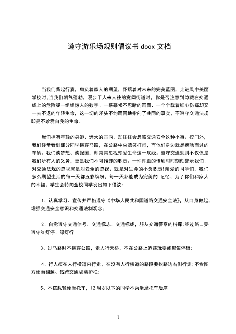 我们拥有年轻的身躯、远大的志向,却往往会忽略交通安全这种小事。校门外,我们经常看到部分同学横穿马路,在公路中央嬉笑打闹,而他们身边就是疾驰而过的车辆。我们谈梦想、谈报国,却常常忽视珍爱生命这一底线。遵守交通规则不仅仅是我们所有人的义务,更是我们不可推卸的职责。一件件血的惨剧时时刻刻警示我们:对交通法规的忽视就是对安全的忽视、就是对生命的不负职责!亲爱的同学们,我们多么期望生活的每一天都五彩缤纷,每一天都能成为完美的.记忆,为了你们和家人的幸福,学生会特向全校同学发出如下倡议: