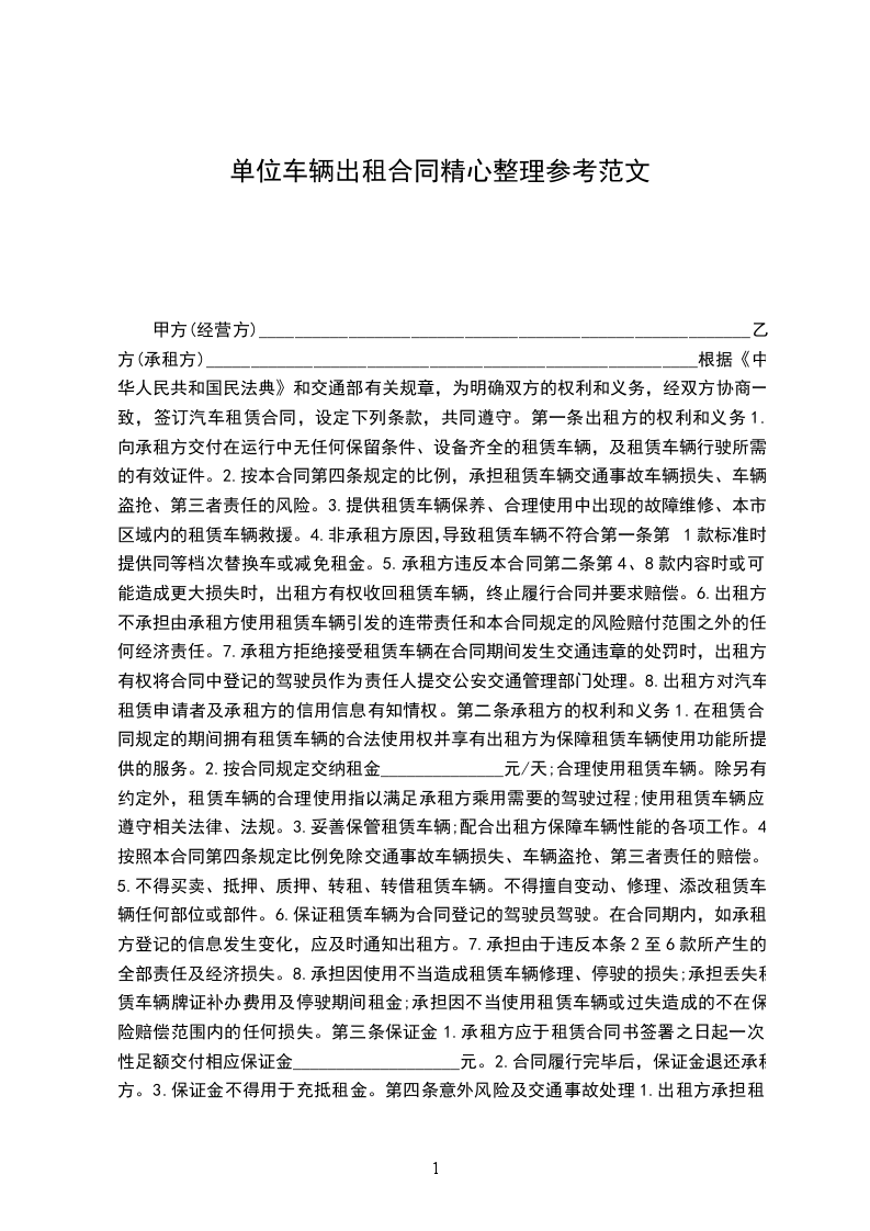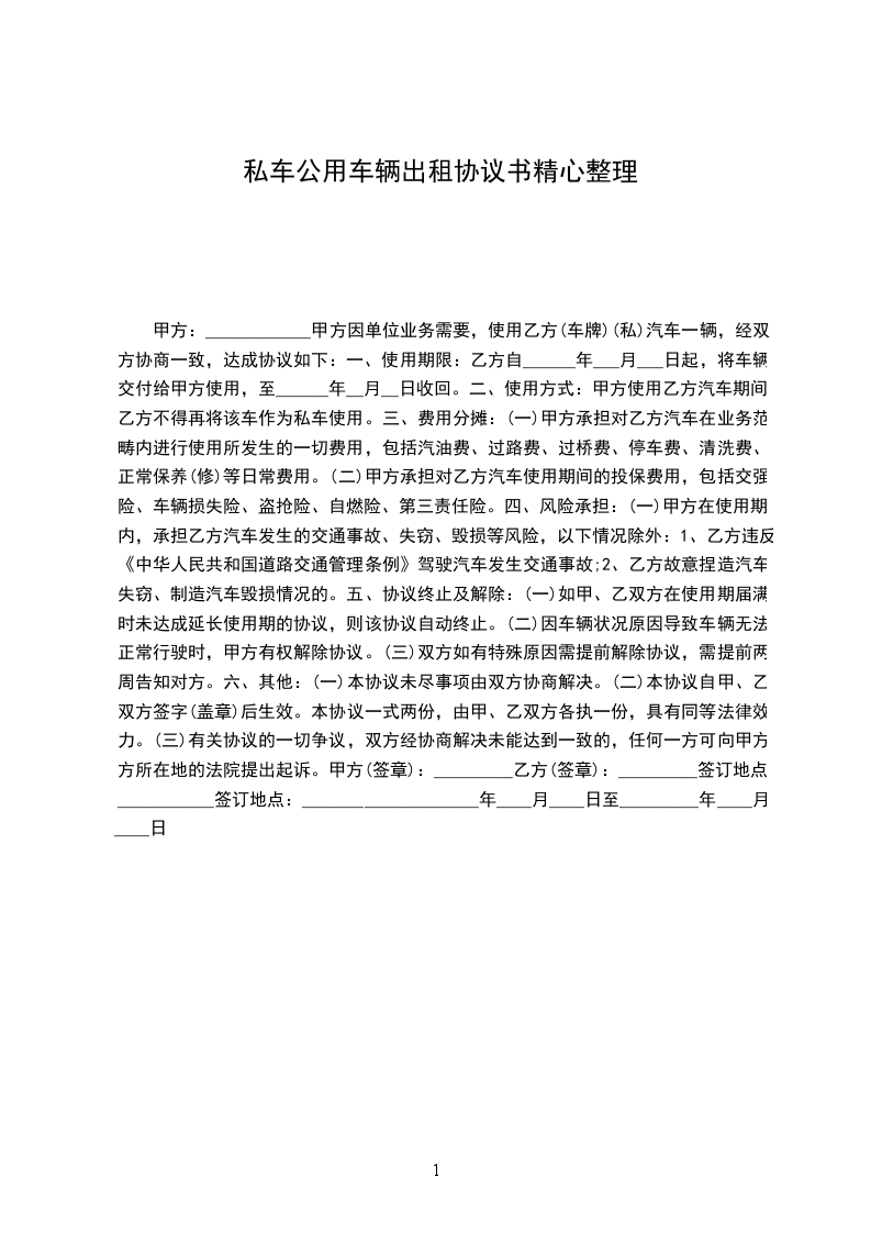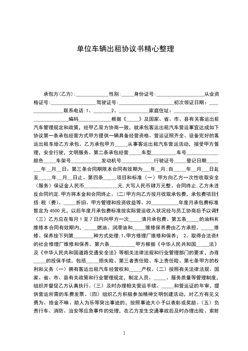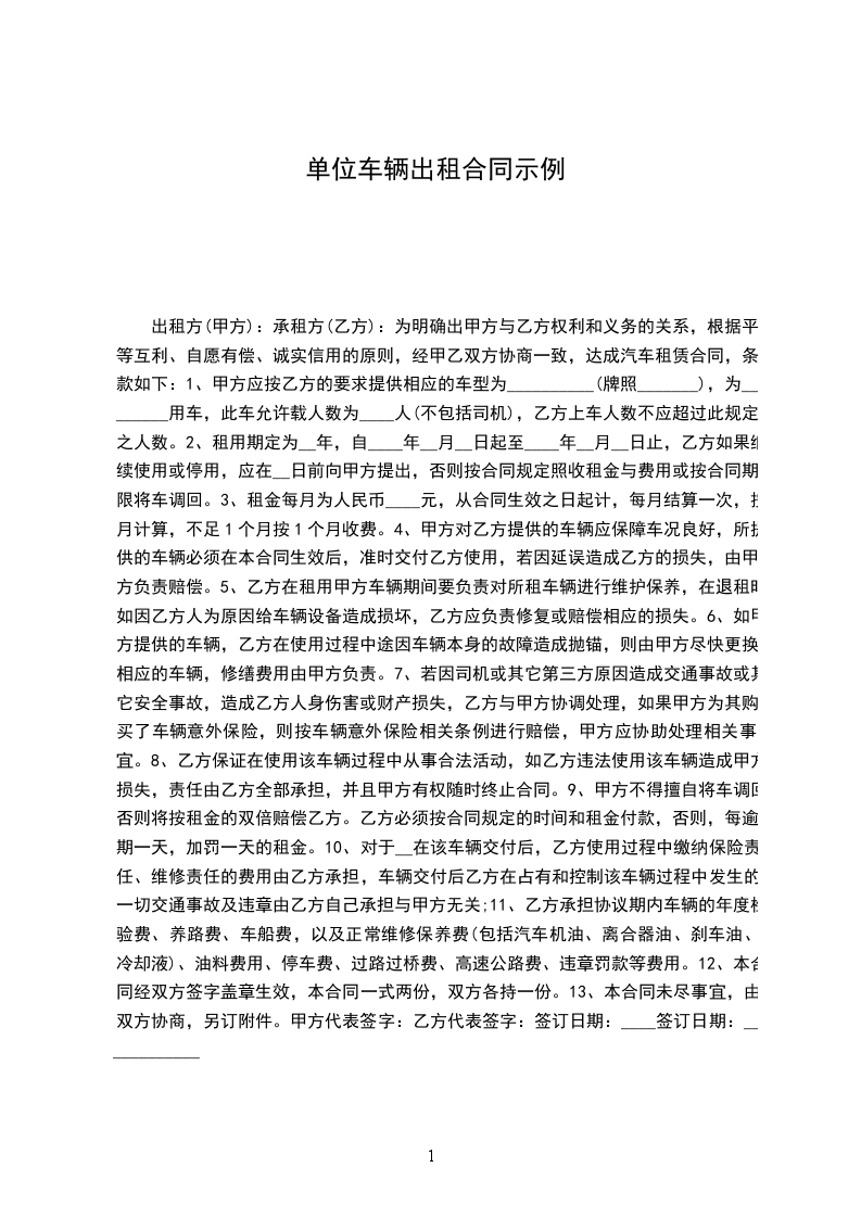意,甲方将车辆出租给乙方使用。就车辆租赁有关事宜,签订如下协议。,以便双方共同遵守特制定本协议。