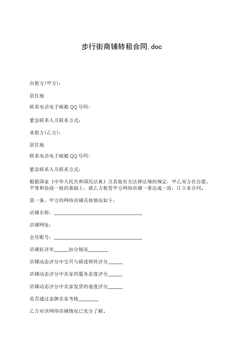 根据国家《中华人民共和国民法典》及其他有关法律法规的规定,甲乙双方在自愿、平等和协商一致的基础上,就乙方租赁甲方网络店铺一事达成一致,订立本合同。