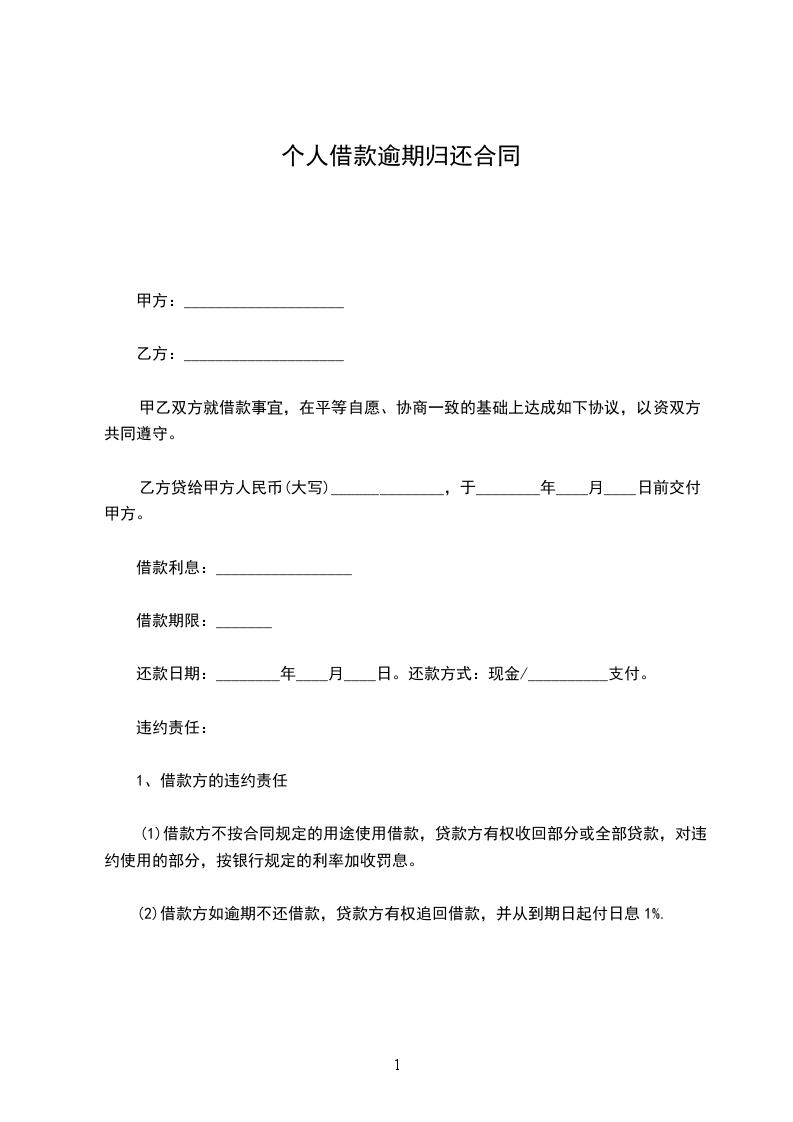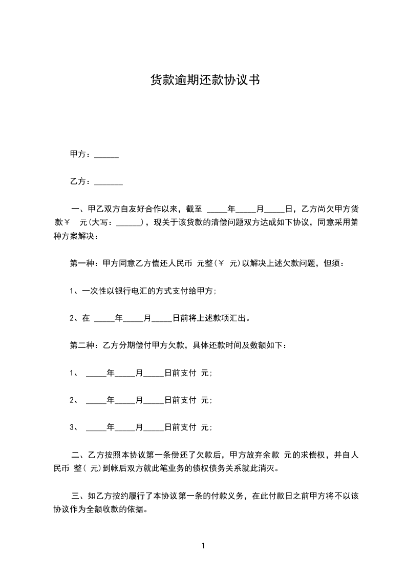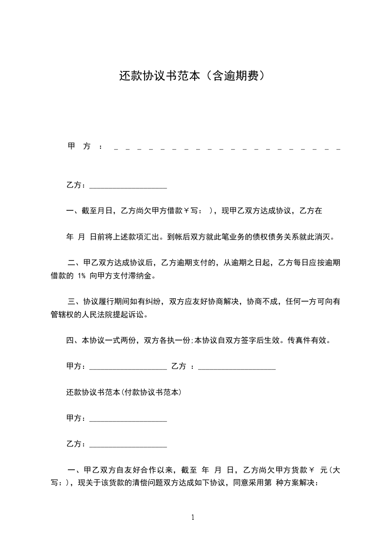 二、甲乙双方达成协议后,乙方逾期支付的,从逾期之日起,乙方每日应按逾期借款的 1% 向甲方支付滞纳金。