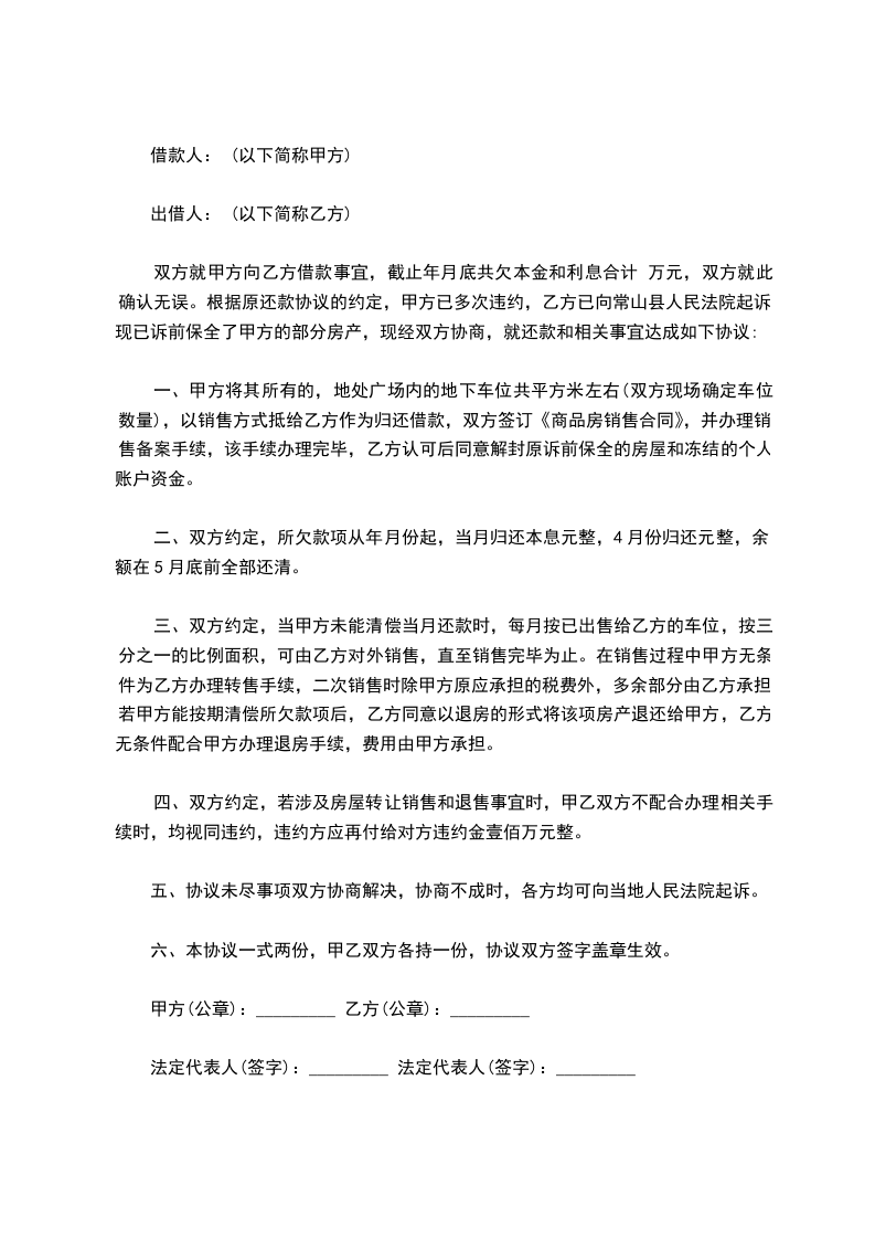 一、截至月日,乙方尚欠甲方借款¥写: ),现甲乙双方达成协议,乙方在