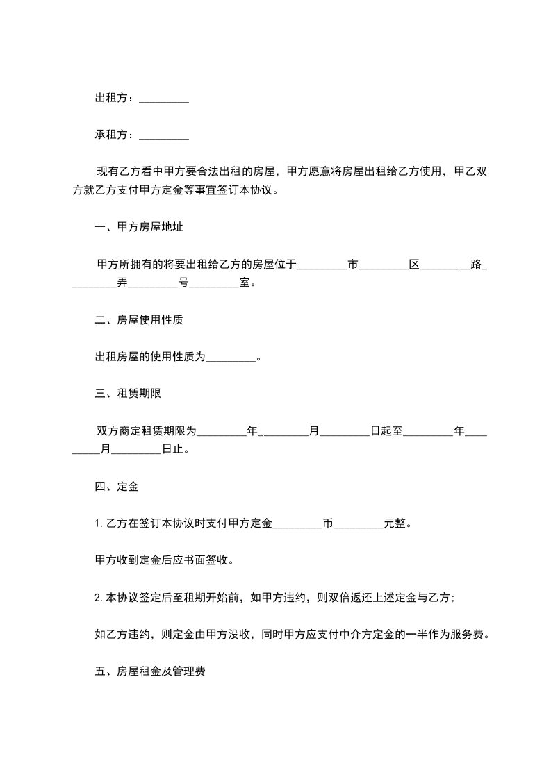 3、经双方协商该房屋每月租金为_________元;租金总额为_________元(大写___万___仟___佰___拾___元整)