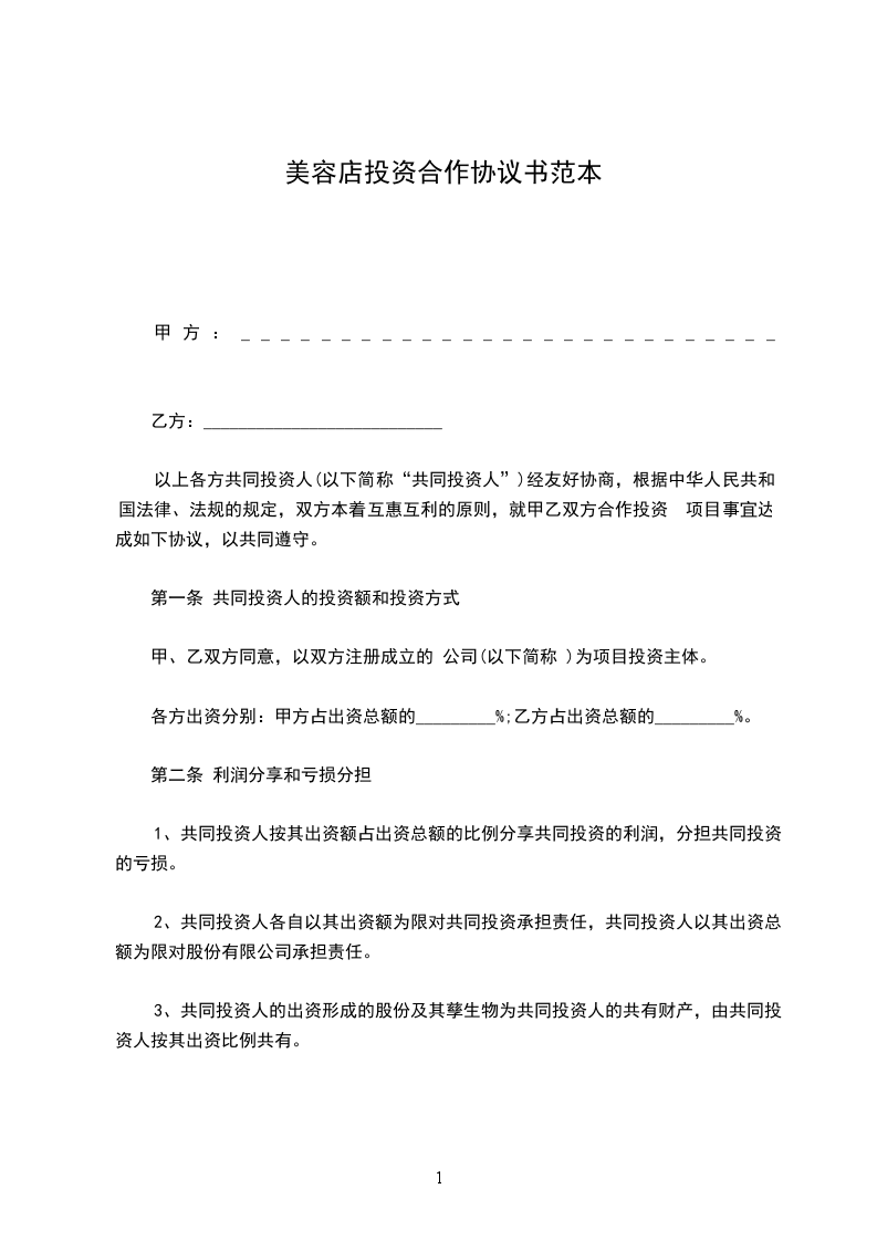 以上各方共同投资人(以下简称“共同投资人”)经友好协商,根据中华人民共和国法律、法规的规定,双方本着互惠互利的原则,就甲乙双方合作投资 项目事宜达成如下协议,以共同遵守。