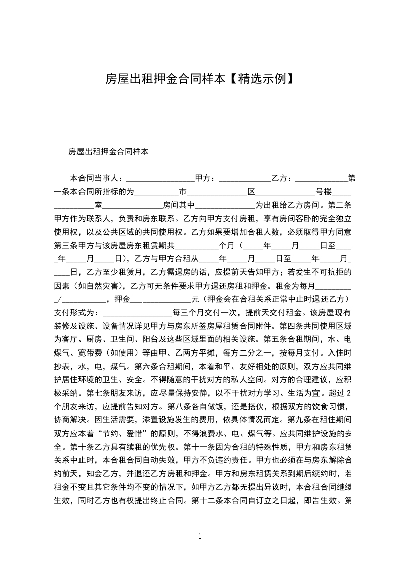 本出租协议的租赁保证金为首月租金的_______倍,即人民币___________元(大写:___________)。