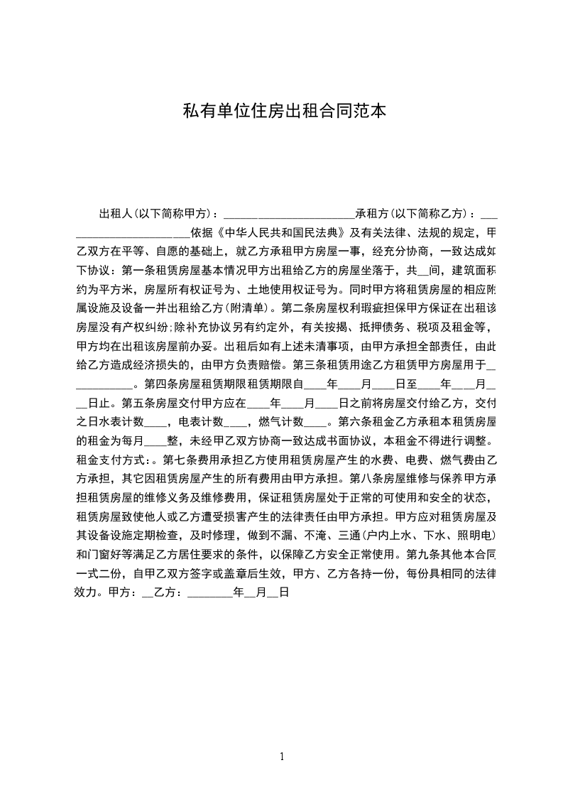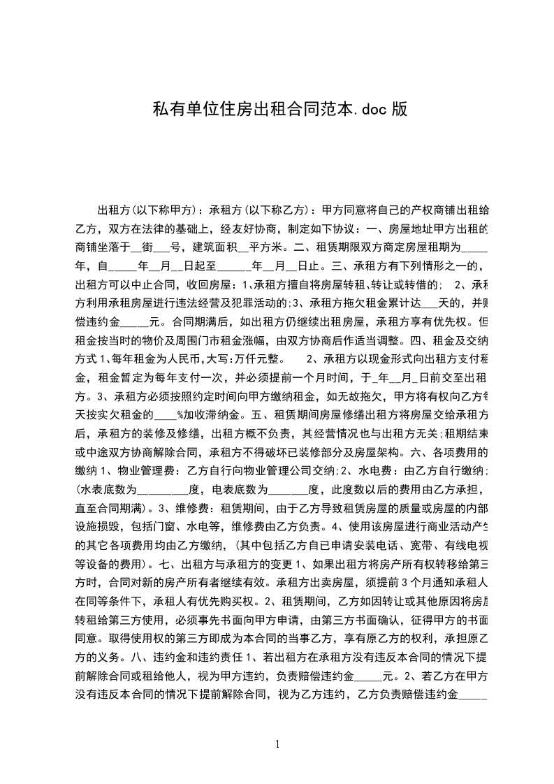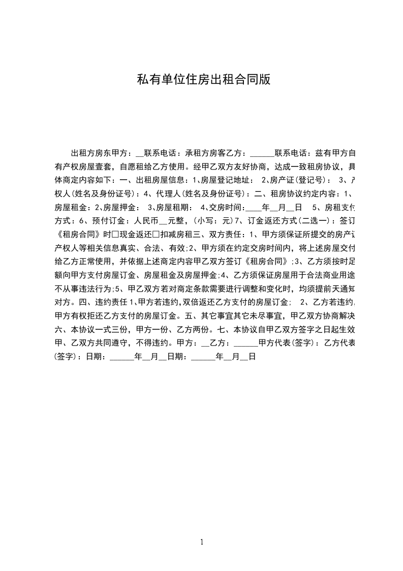 1、若出租方在承租方没有违反本合同的情况下提前解除合同或租给他人,视为甲方违约,负责赔偿违约金_____元。
