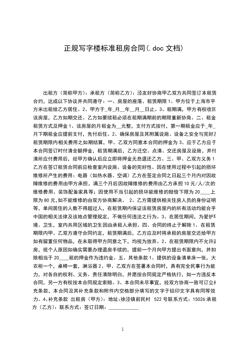 出租方(下称甲方)
