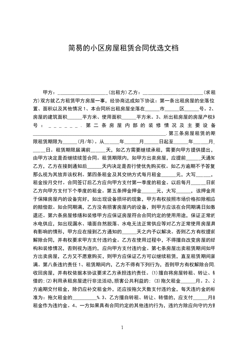 1、若出租方在承租方没有违反本合同的情况下提前解除合同或租给他人,视为出租方违约,负责赔偿违约金______元。
