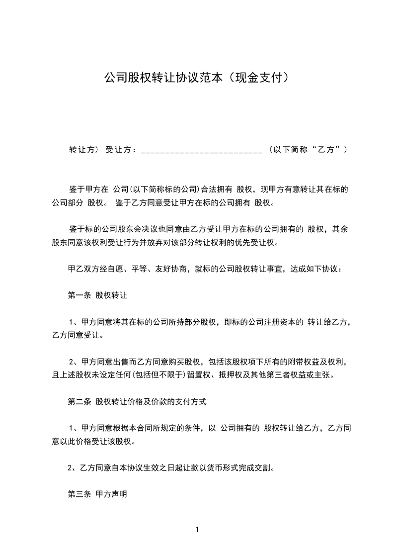 第一条 股权转让