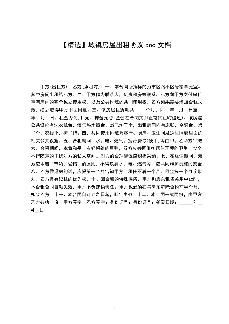 十、租赁期间,甲乙双方均不得无故解除合同。如甲方要收回房屋,必须提前一个月书面