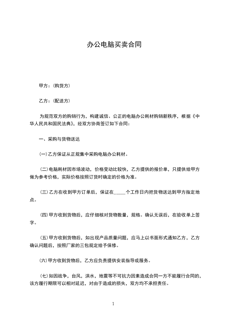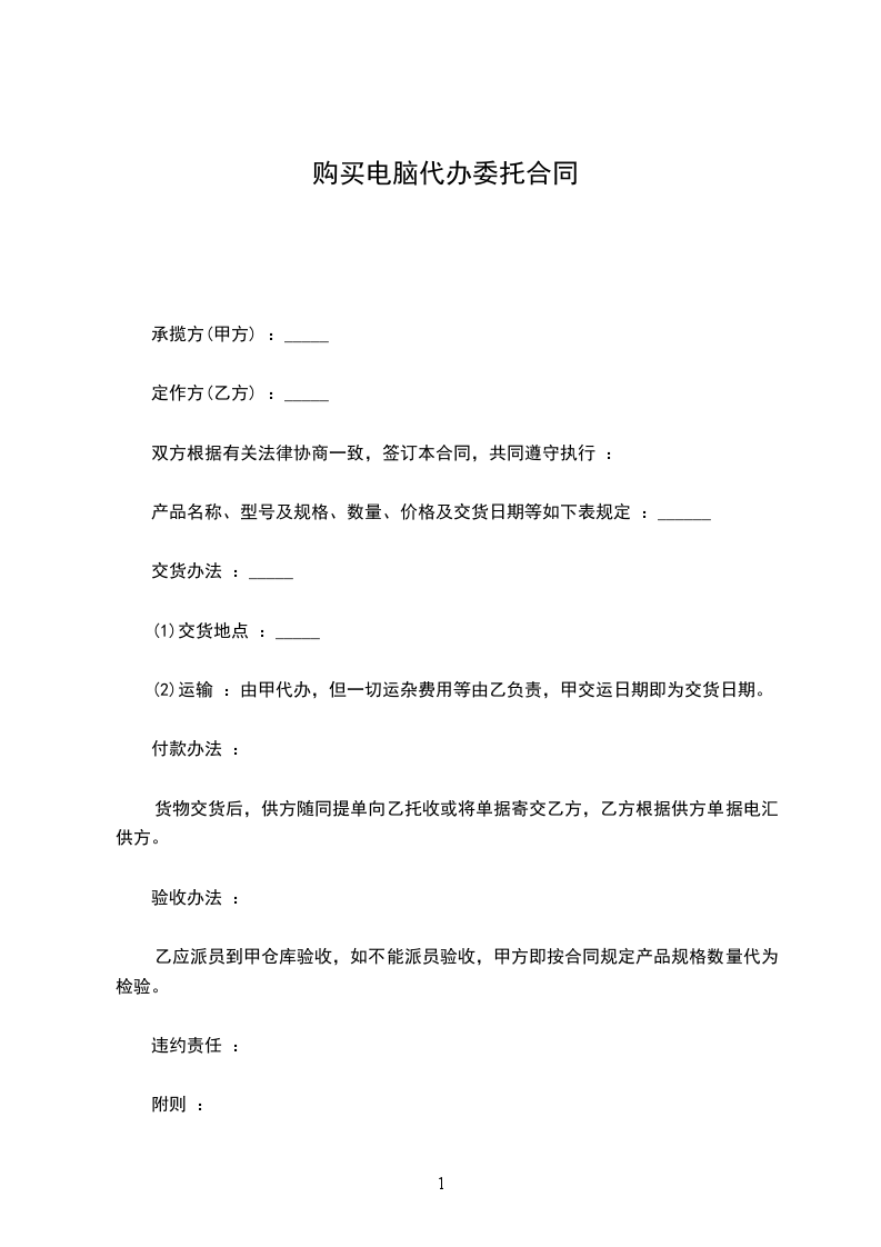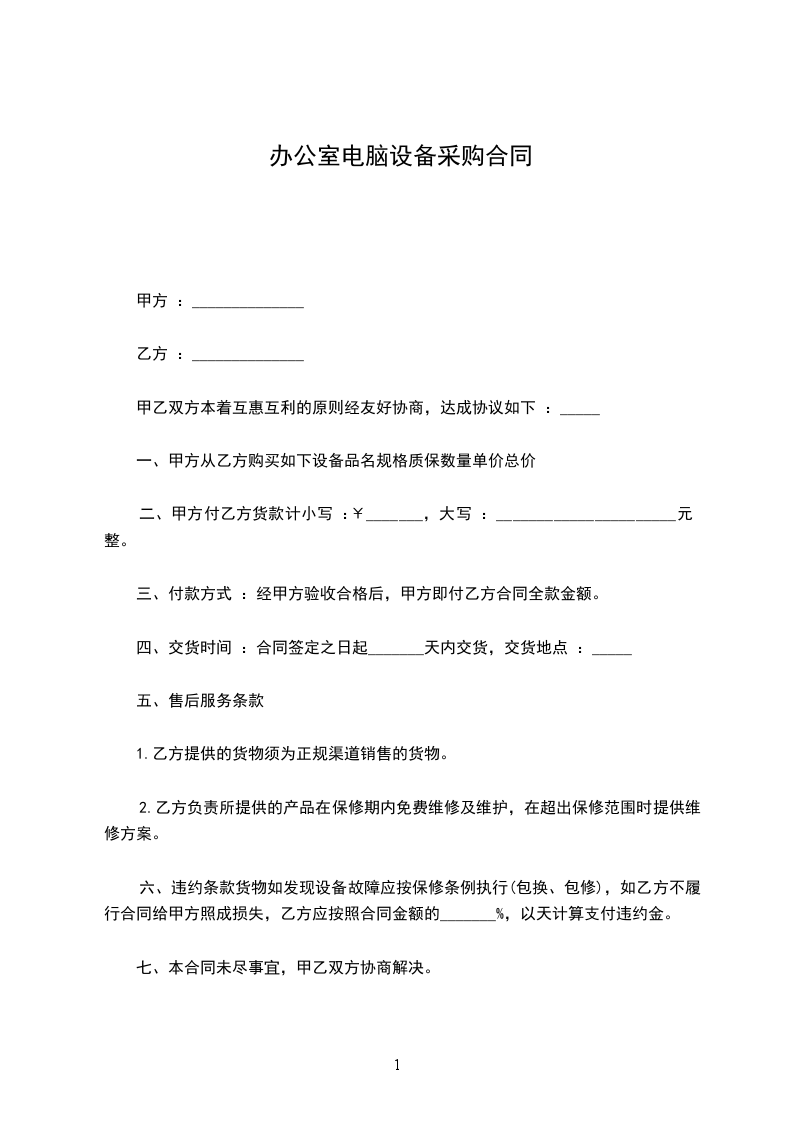 一、甲方向乙方购买下列产品(价格单位为人民币_____元)
